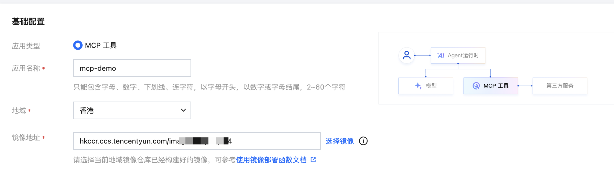 3.3 镜像:选择提前上传到镜像仓库的镜像,镜像要求请参见 WebServer 镜像函数。