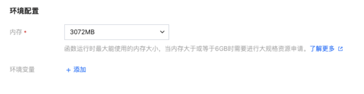 4.2 添加环境变量,在配置中定义的环境变量可在函数运行时从环境中获取到。详情请参见 环境变量。