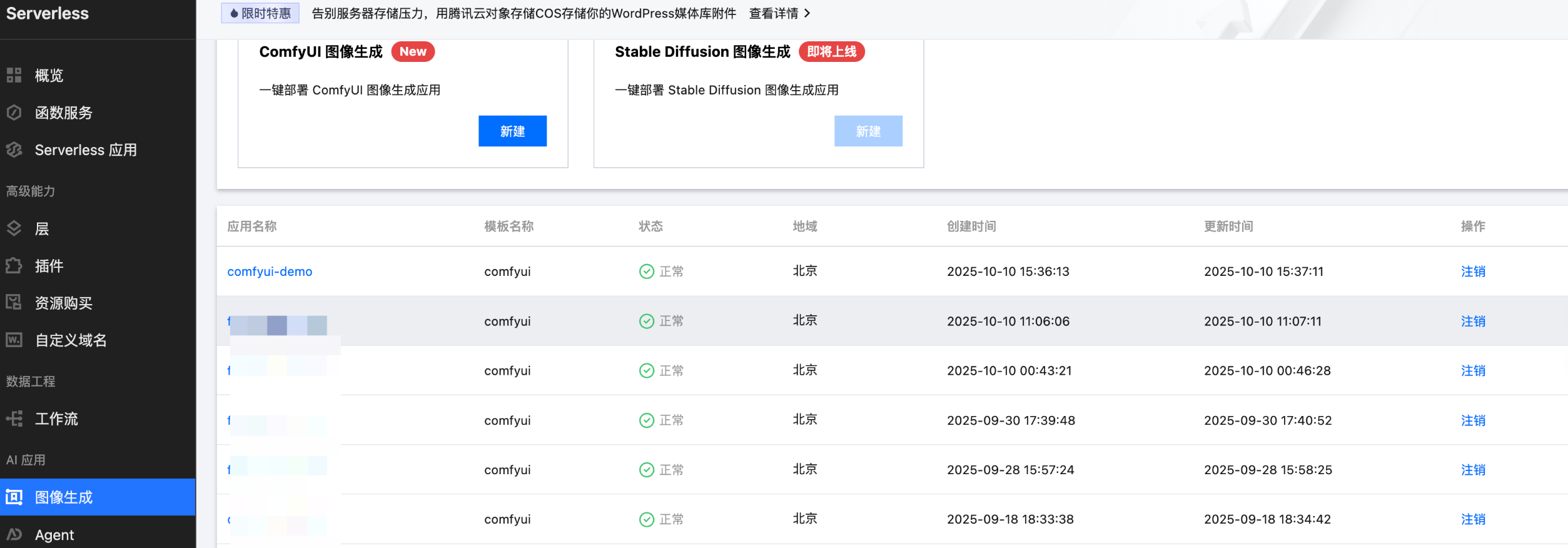 1. 登录 Serverless 控制台,单击左侧导航栏的图像生成。