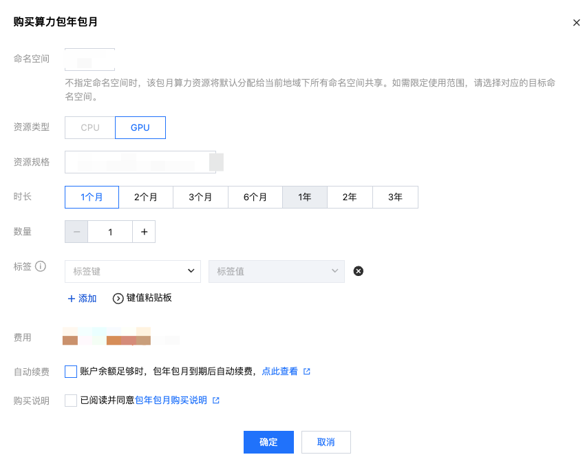 不指定命名空间时,该包月算力资源将默认分配给当前地域下所有命名空间共享。