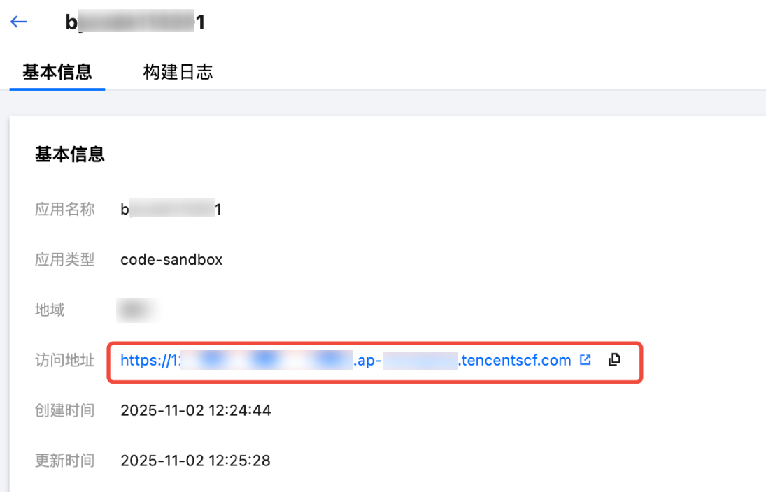 8. 应用部署完成后,单击应用名称,进入应用详情页面,可以获得访问地址。