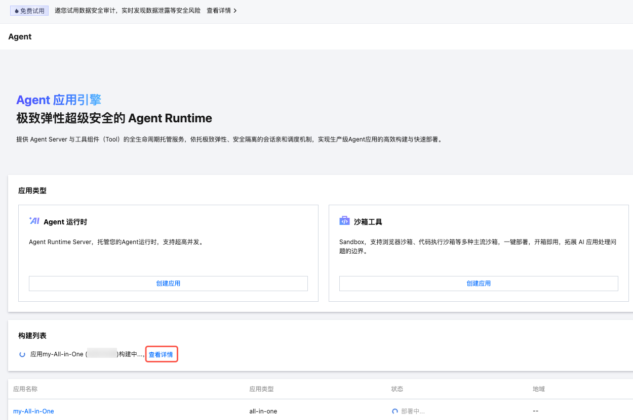 本文介绍如何在 Agent 执行引擎一键部署和使用 All-in-One 沙箱应用。