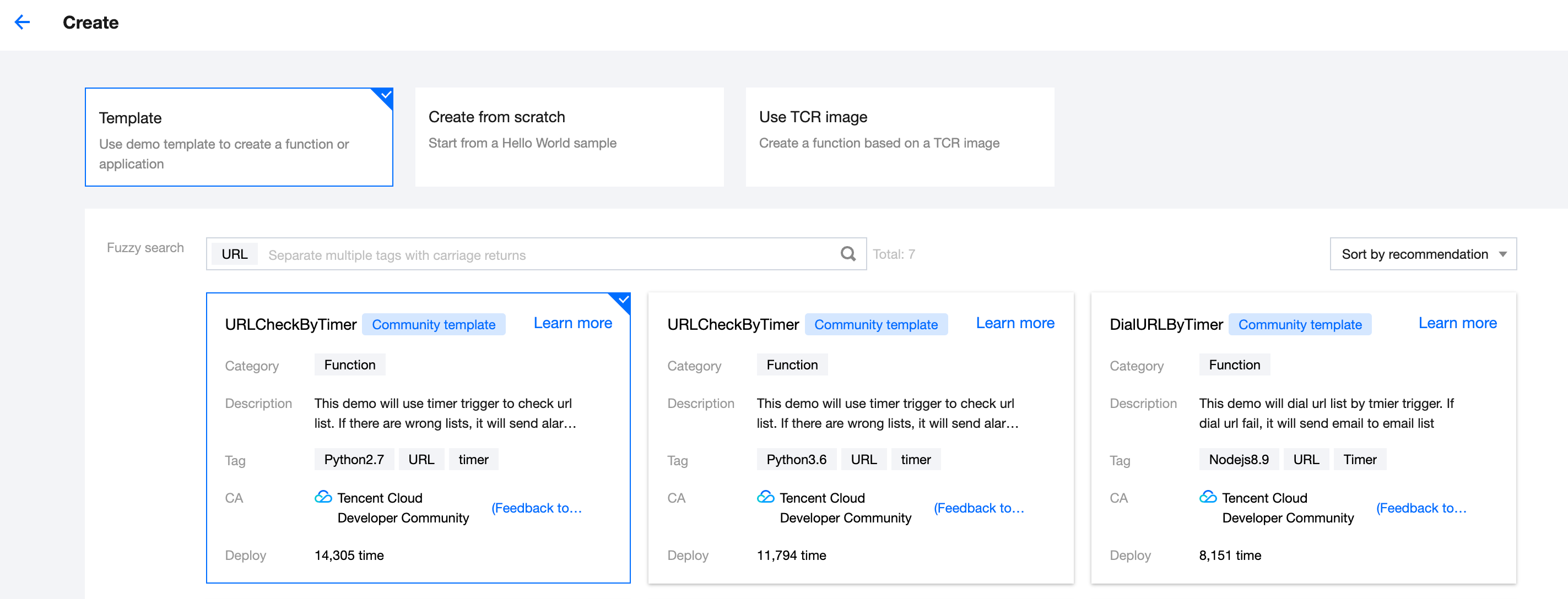 In this example, we utilize the Serverless Cloud Function (SCF) to implement dial-testing for a specific list of URLs, sending alert emails for URLs that fail the test. We can configure a timed trigger for this function to execute it on an hourly or daily basis.