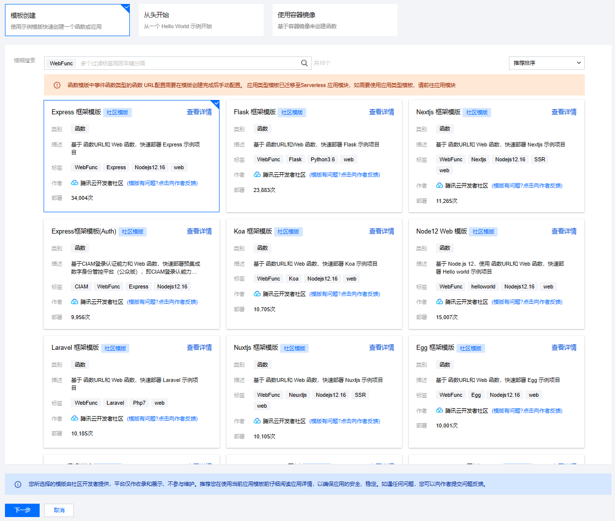 WebFunc,筛选所有 Web 函数模板,选择您想使用的模板,单击下一步。如下图所示:
