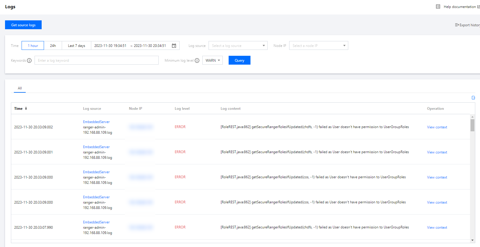 address=/ip:port。3. 在排查问题的时候,经常需要关注关键词的上下文日志,在日志搜索页单击查看上下文,进入日志上下文页面。
