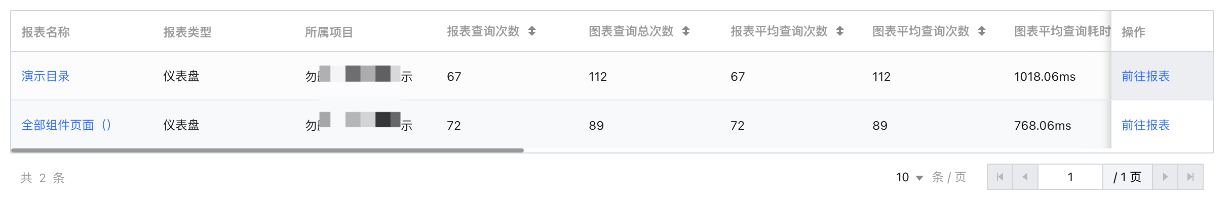 图表平均查询耗时:统计时间内,该报表下的图表平均每次查询的时长;