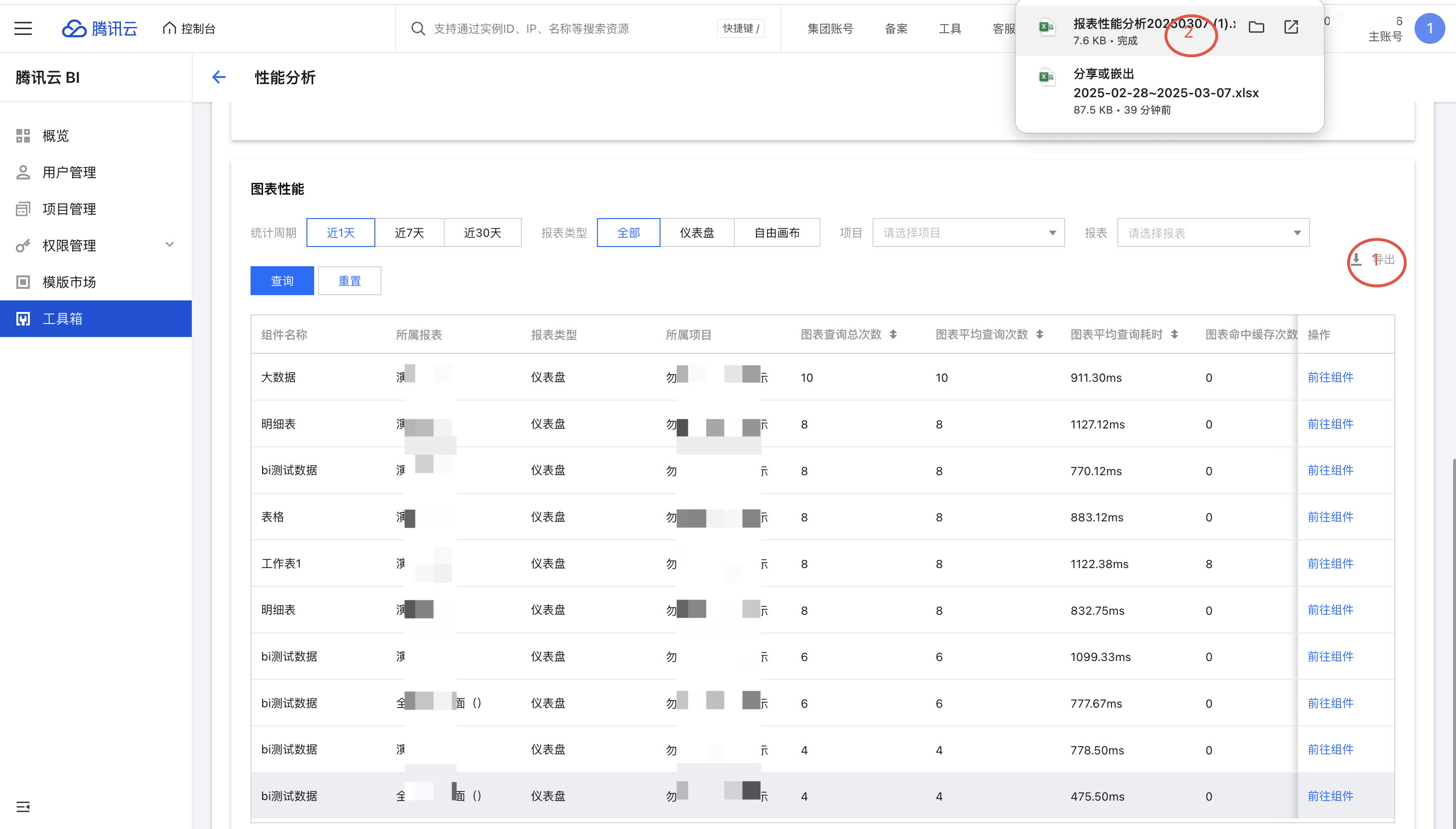 查看全部资源性能:登录 BI 控制台 > 工具箱 > 性能分析;