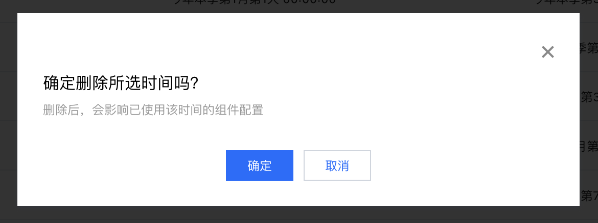 系统管理员可对时间进行修改和删除,删除时,需要进行二次确认: