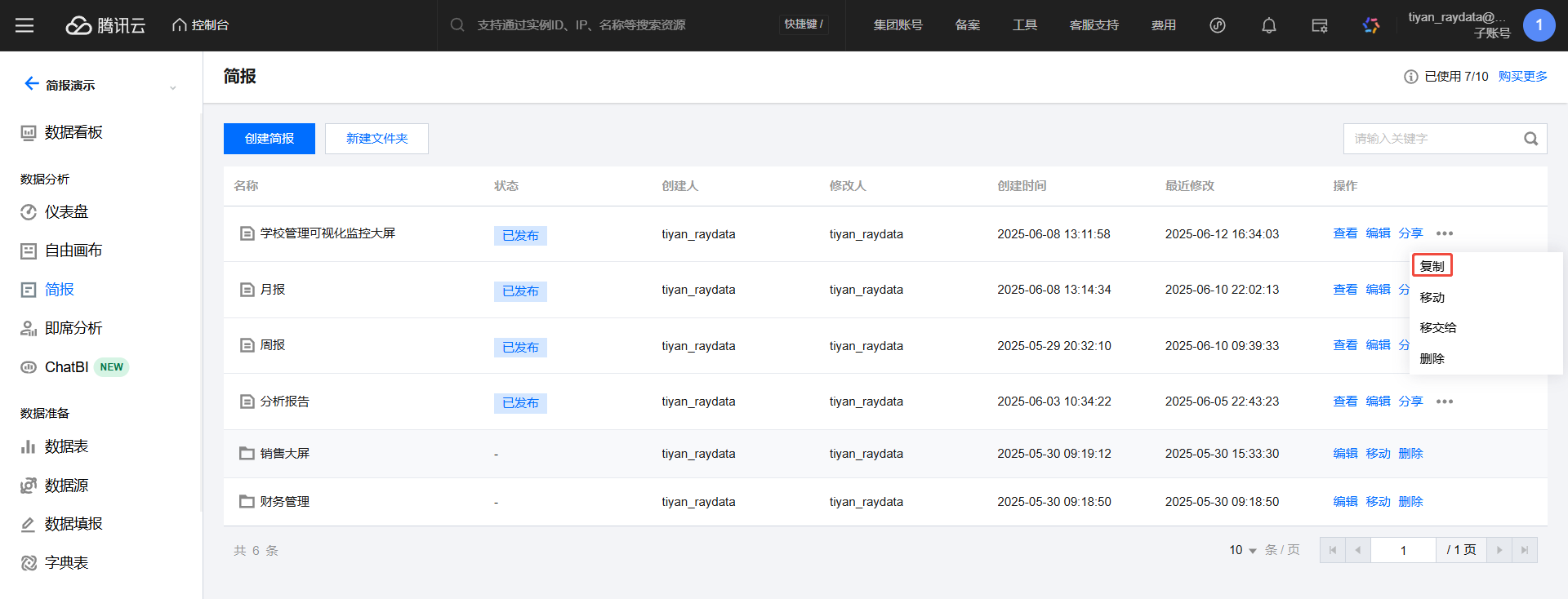 3. 复制简报:单击复制可对当前简报进行复制,生成一个“副本”。