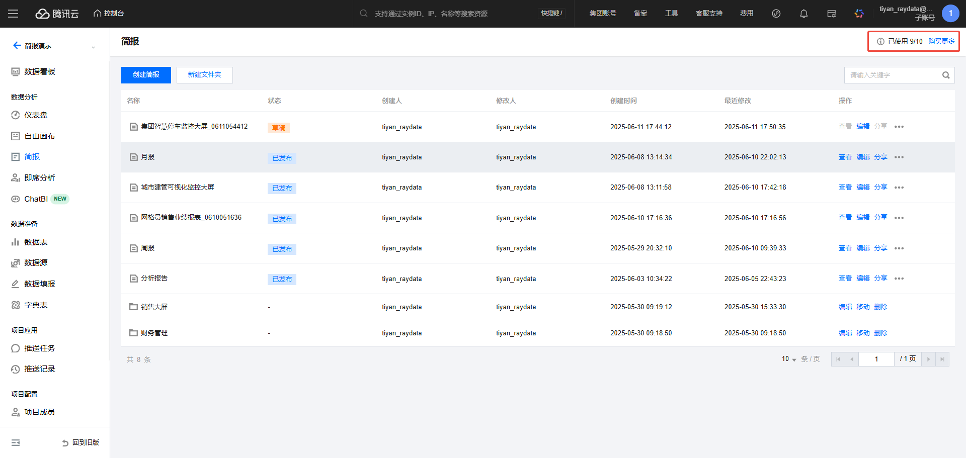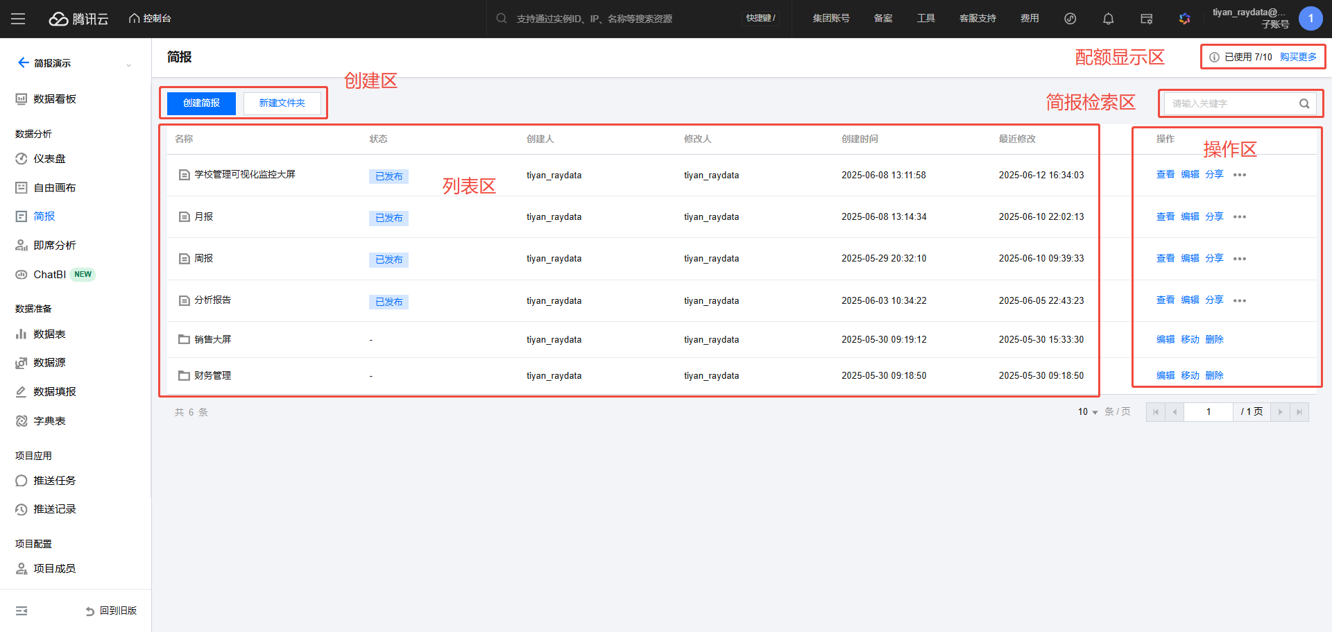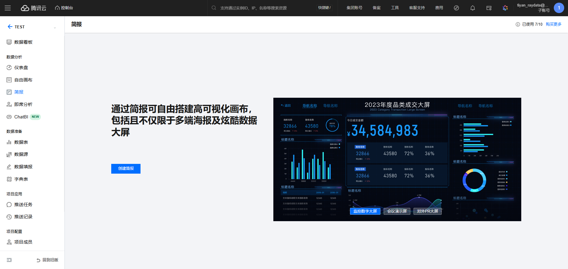 配额显示区:展示当前主账户下的简报配额。