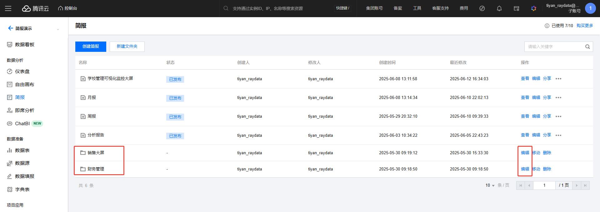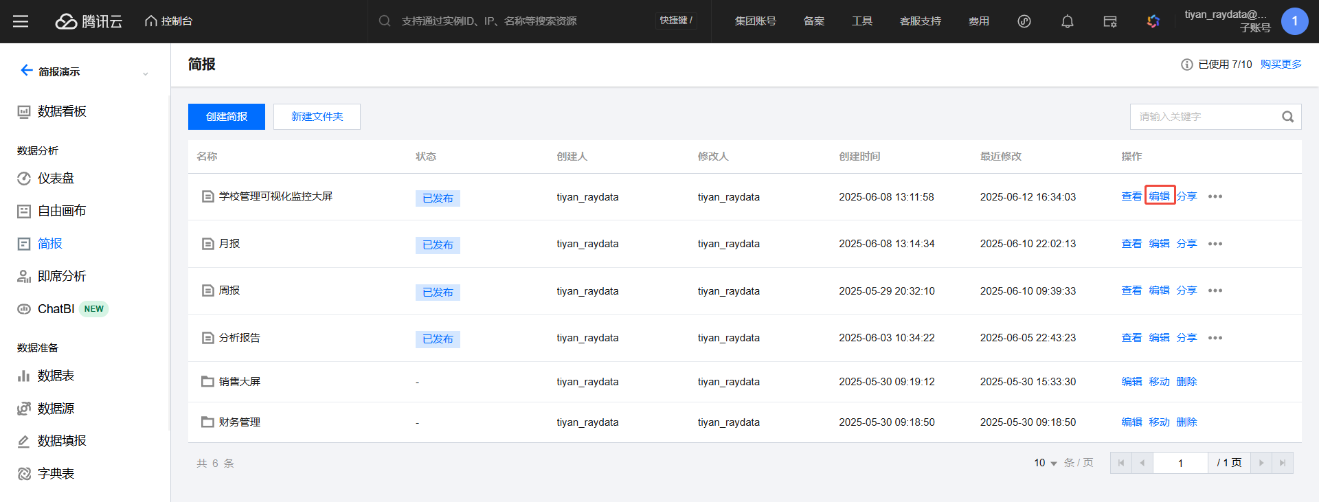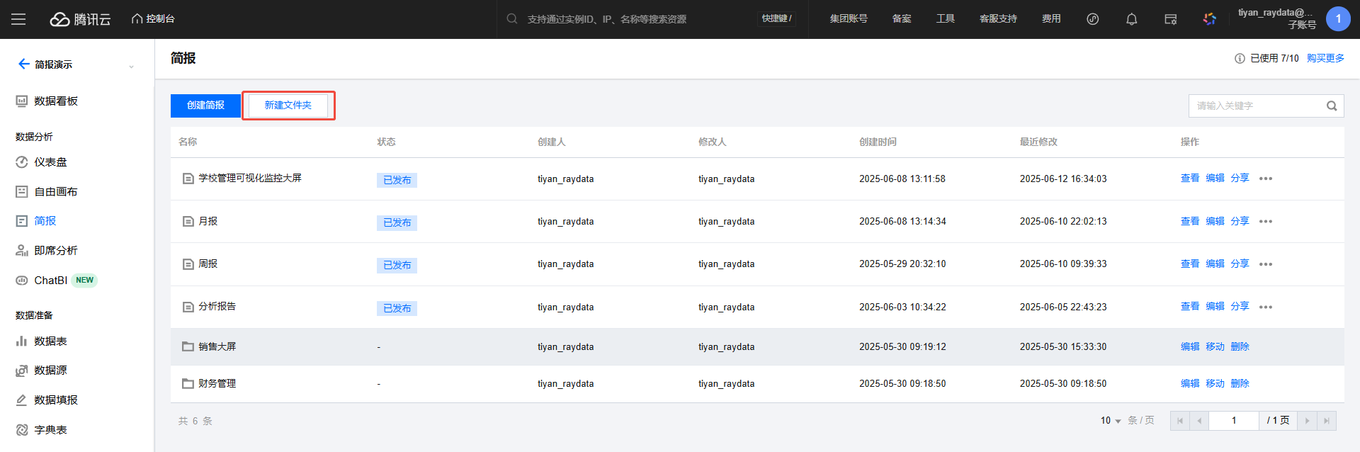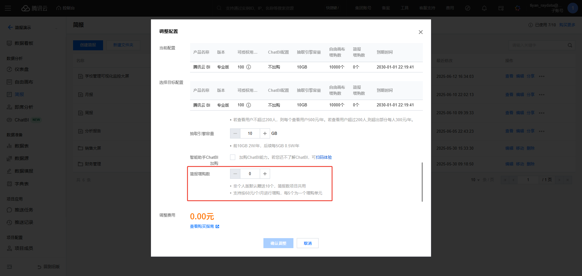 配额显示区:展示当前主账户下的简报配额。