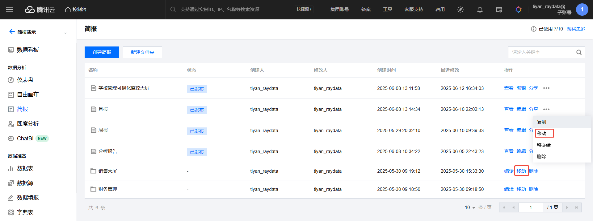 移动:对当前简报或文件夹的位置进行变更,可移动到其他目录。