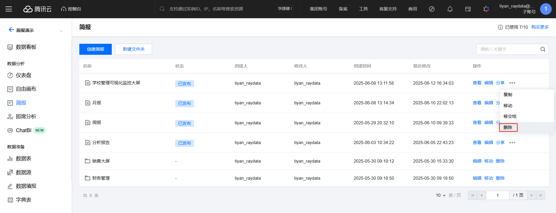 删除:单击删除可对当前简报执行删除。