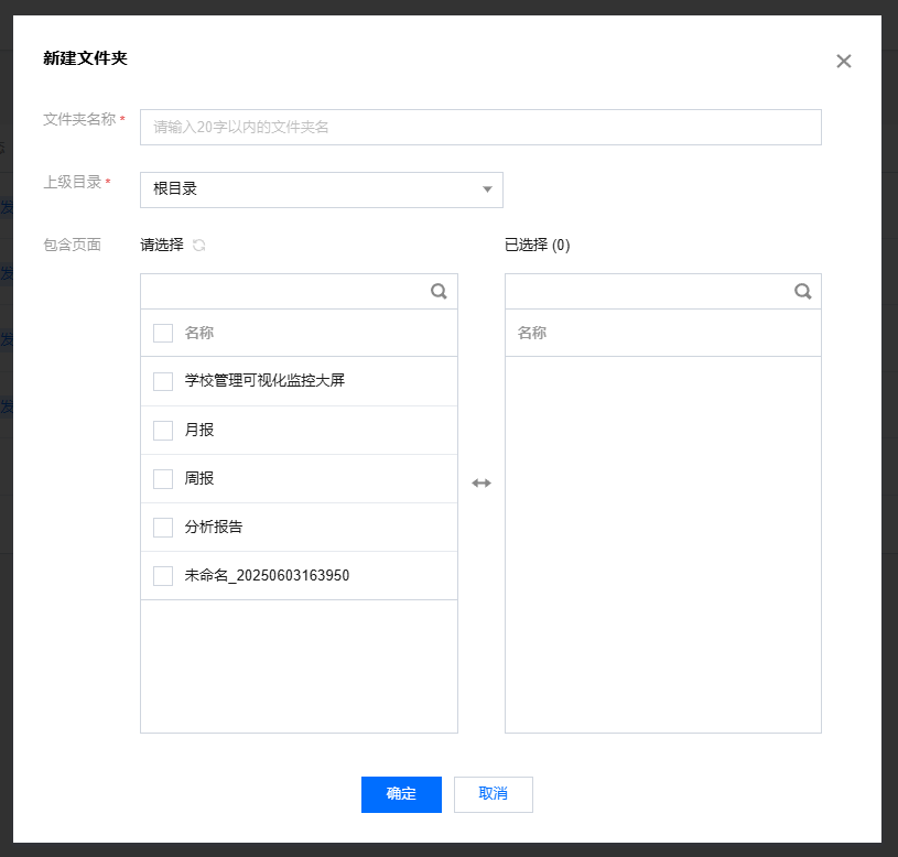 包含页面:在创建目录的同时,就可以将已有的简报移动到该文件夹。您也可以先不选择,后面编辑时再调整。