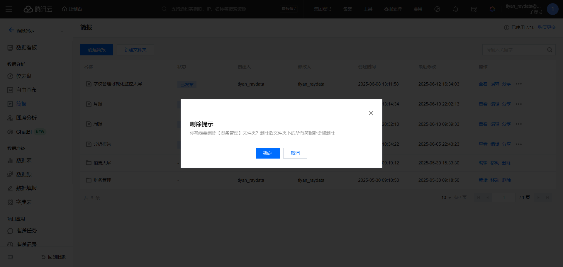 删除文件夹后,文件夹下的所有简报都将被删除。