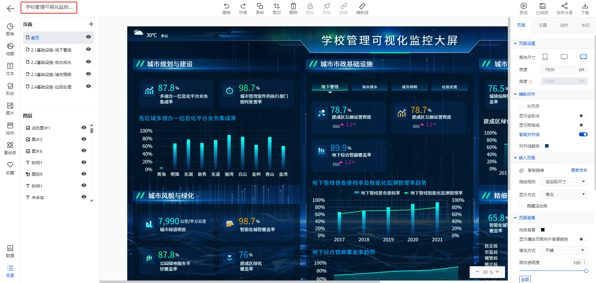 简报名称的修改,可进入编辑画布后修改,如下图: