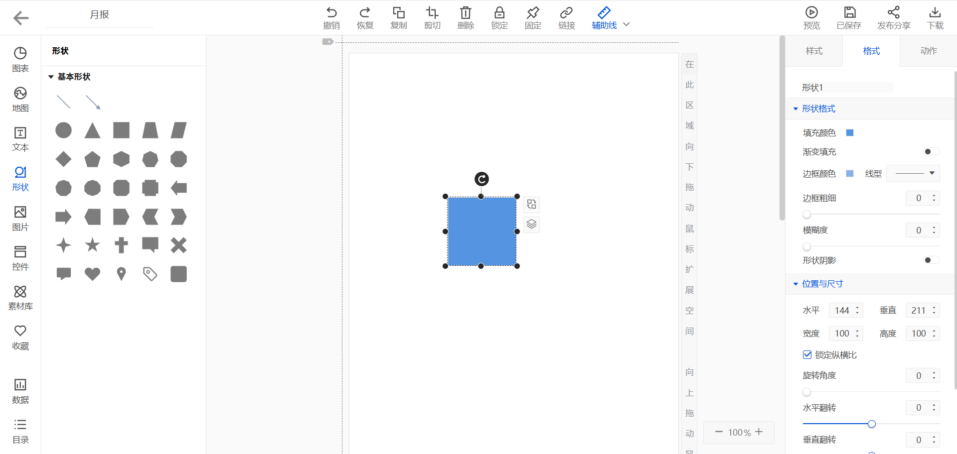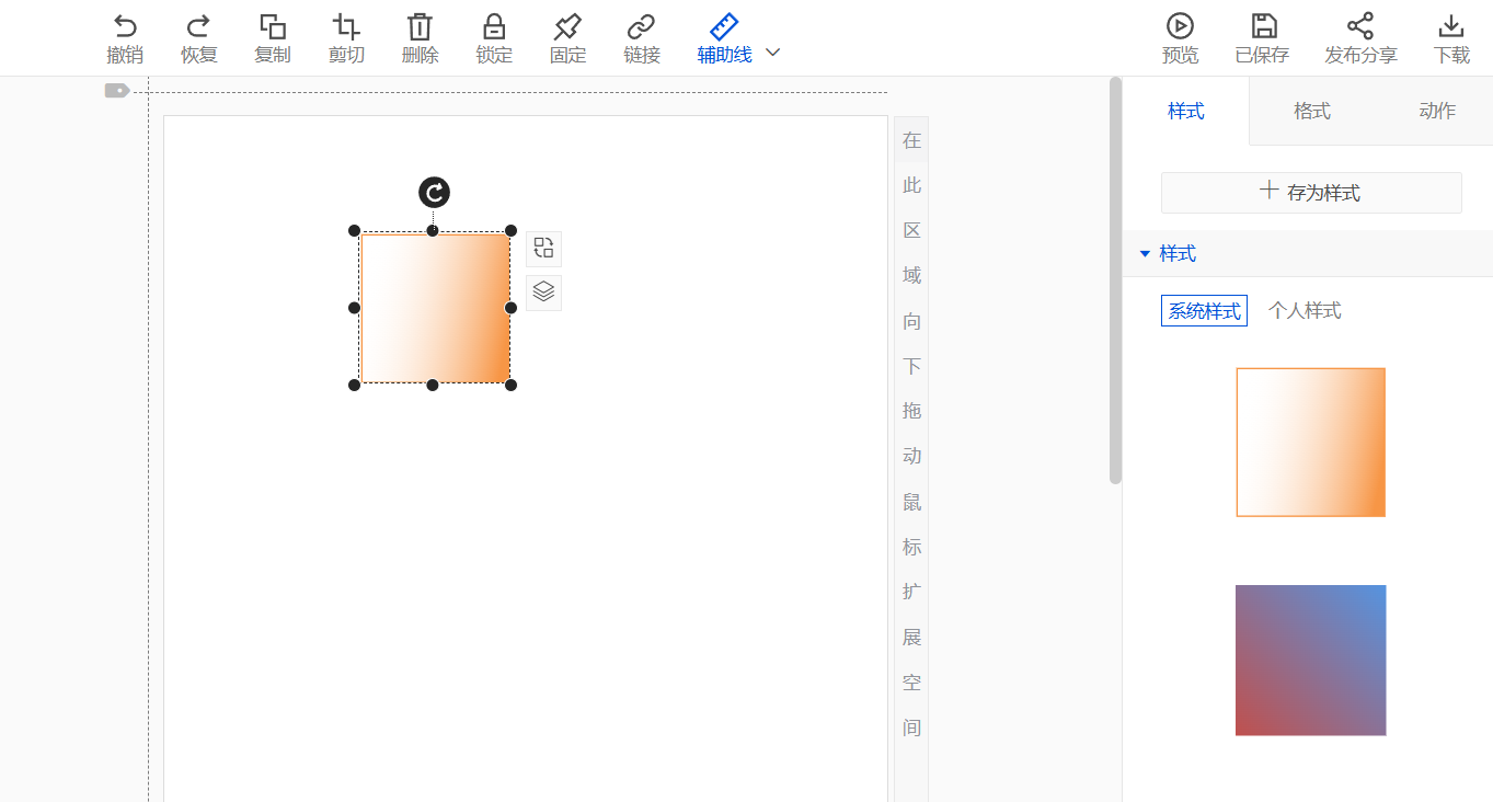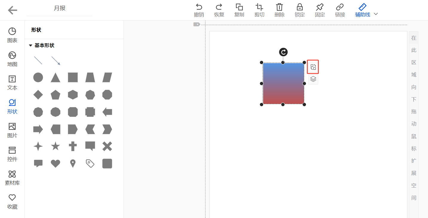 2. 单击要插入的形状或鼠标左键按住形状拖至画布区域。