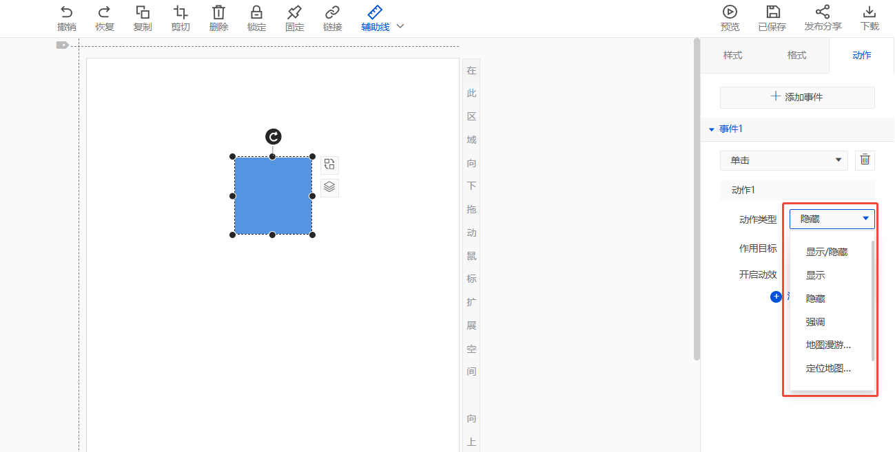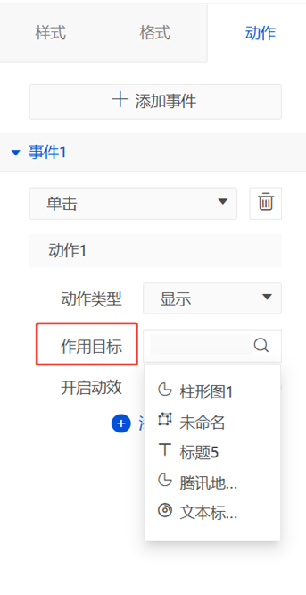 5. 作用目标:选择当前动作需要控制操作的作用对象。