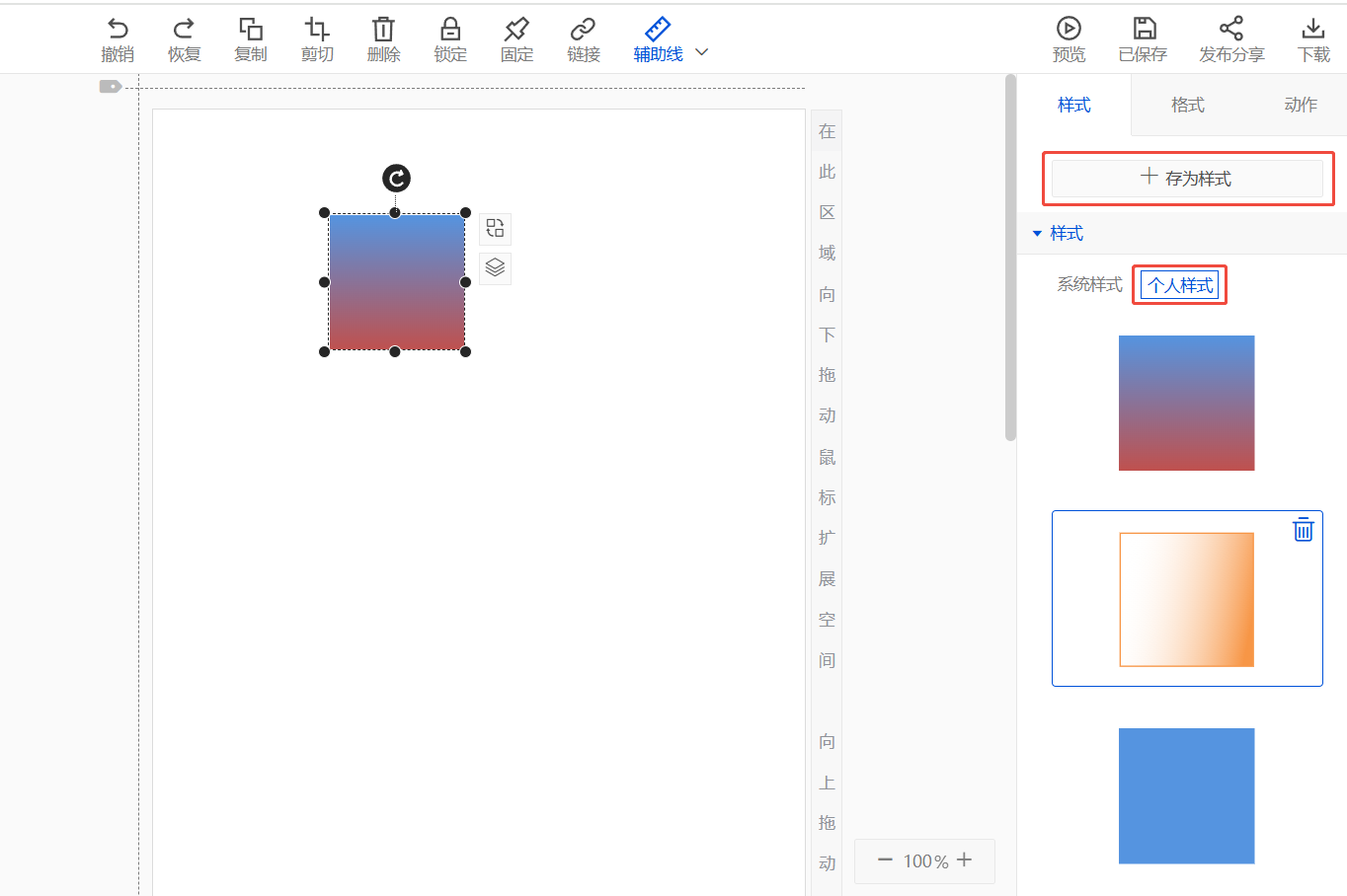 1. 选中要应用样式的图形,在右侧功能区显示样式功能区。