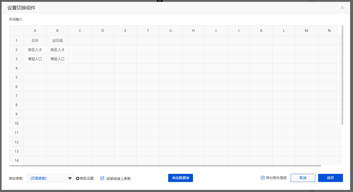 2. 参数值为简报的链接地址,可以通过筛选组件进行参数赋值,使得单容器显示内容变化。
