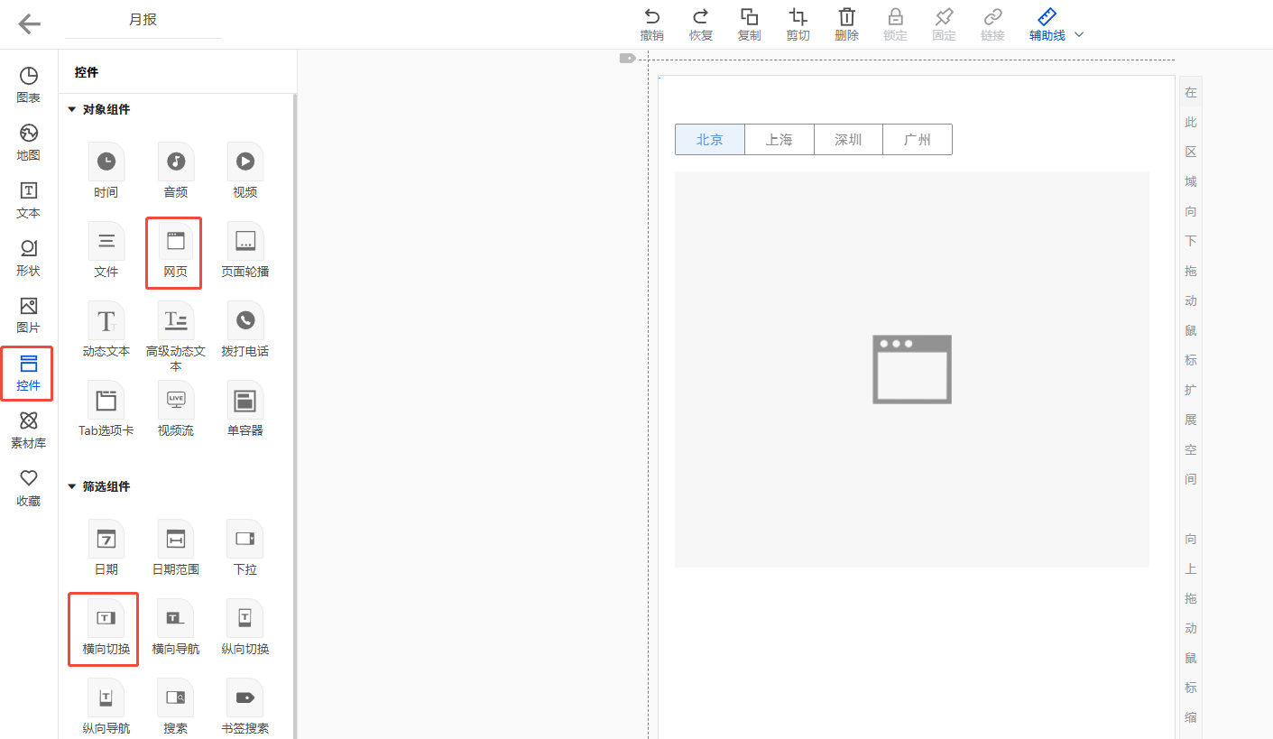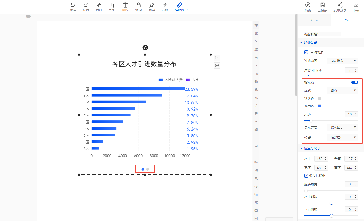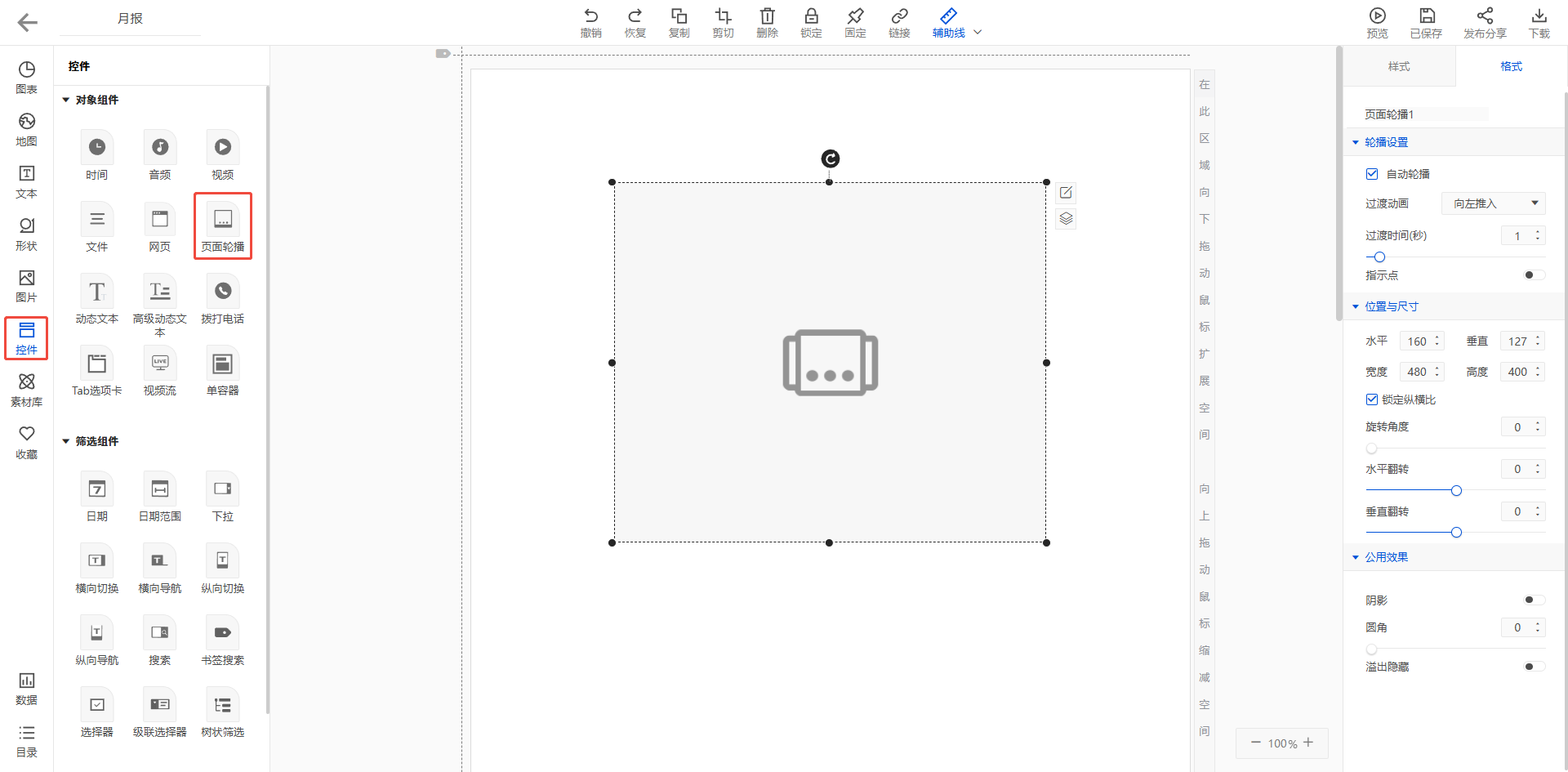 制作简报时,有时候需要多个对象(如图表、图示)进行轮播展示,这时可以通过页面轮播组件来实现。