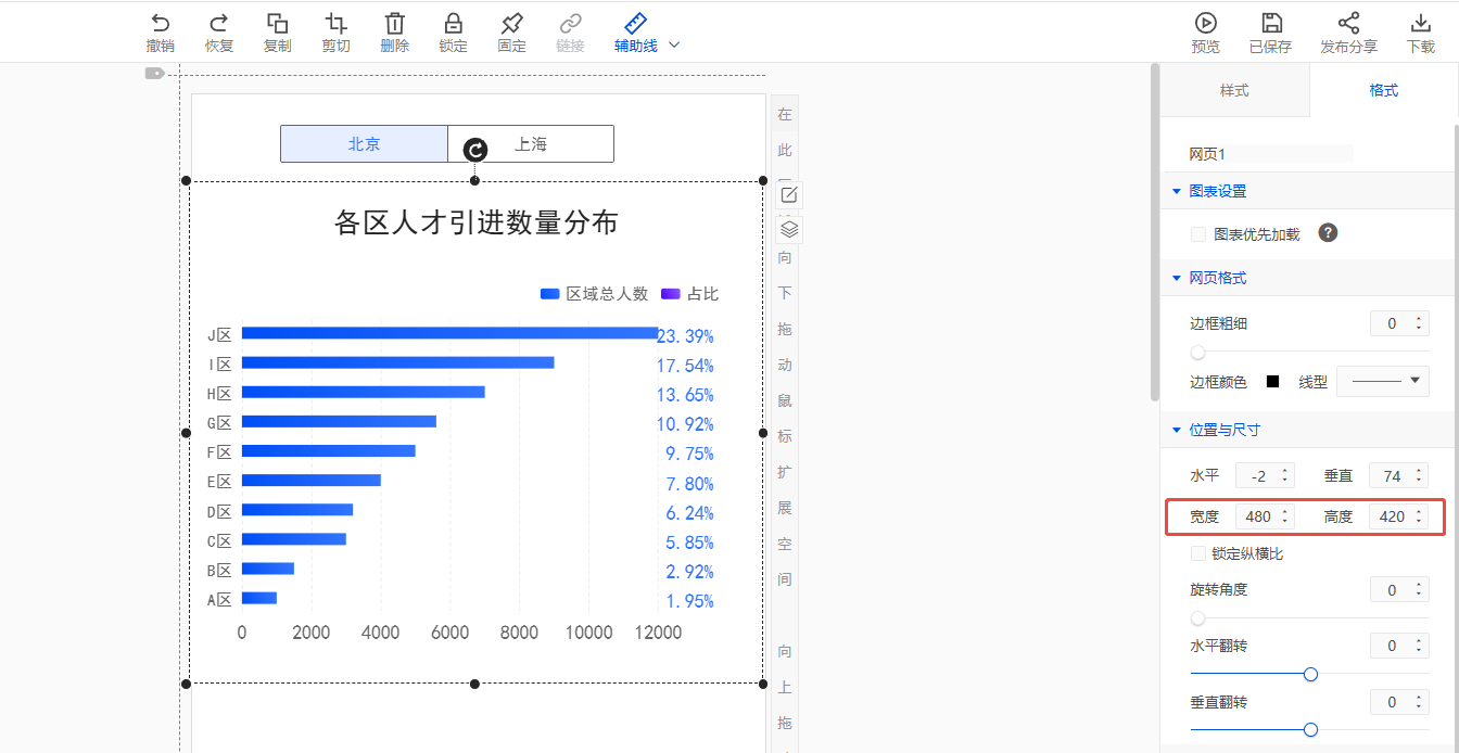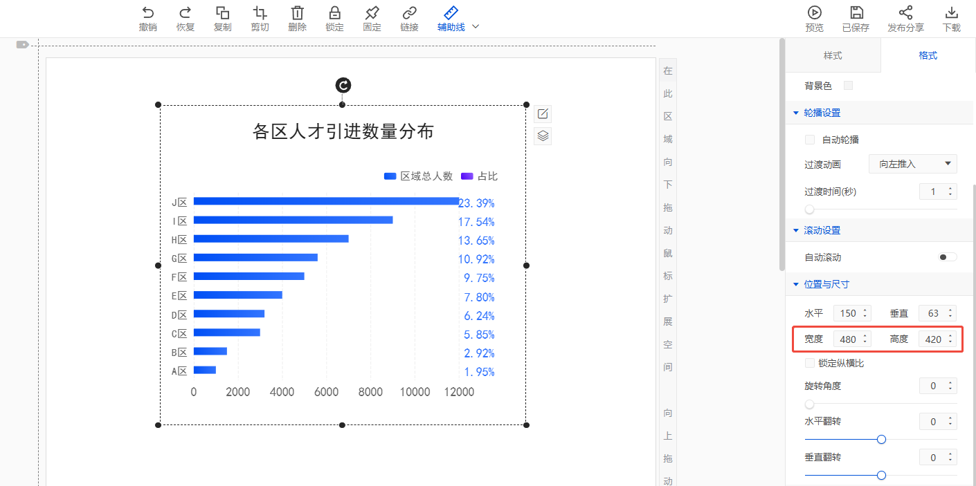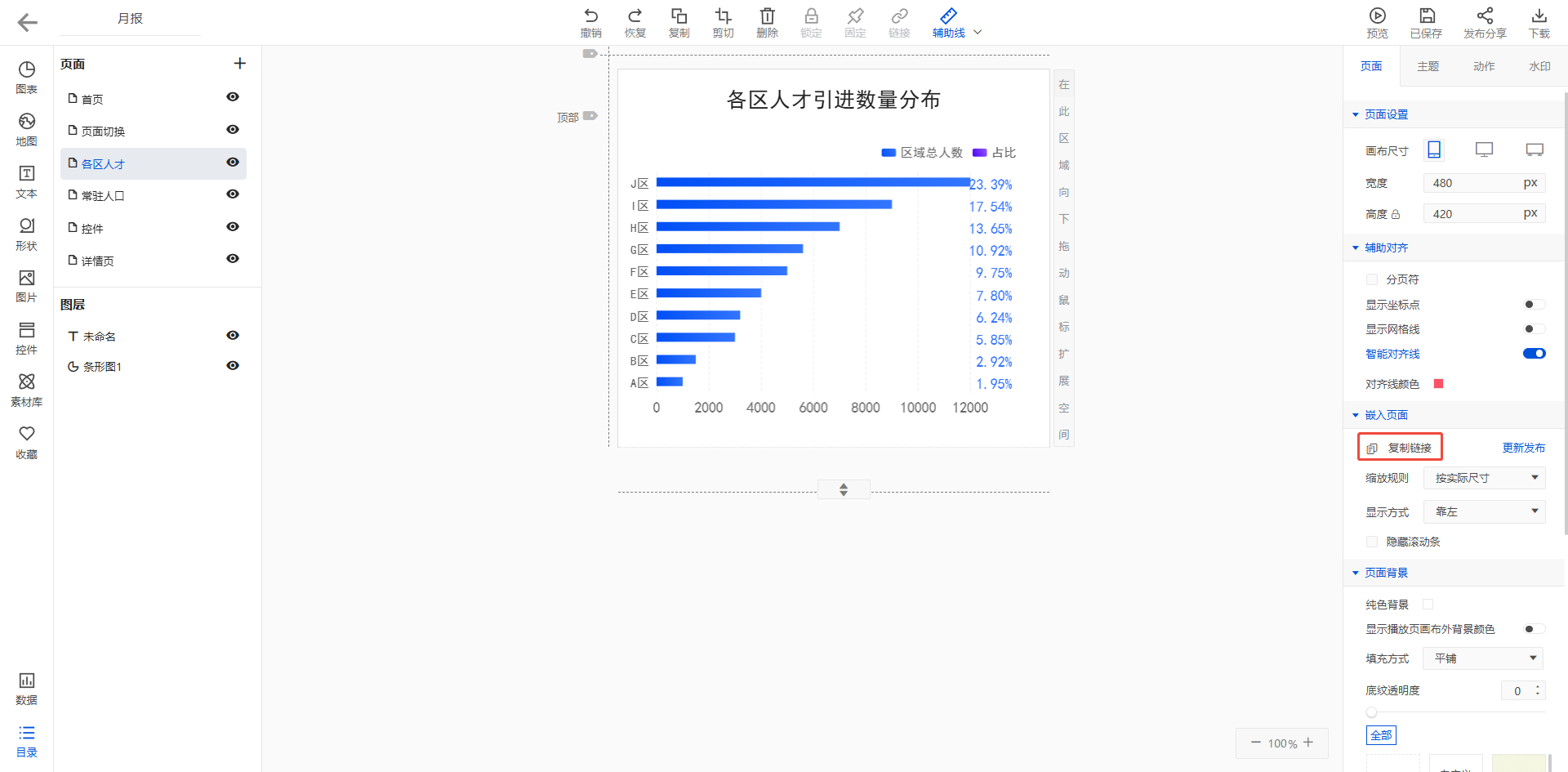 制作简报时,有时候需要多个对象(如图表、图示)进行轮播展示,这时可以通过页面轮播组件来实现。