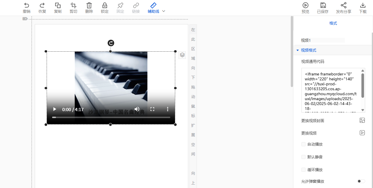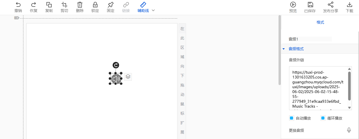 音频上传成功后,可以进行更换音频、设置播放方式等格式设置。