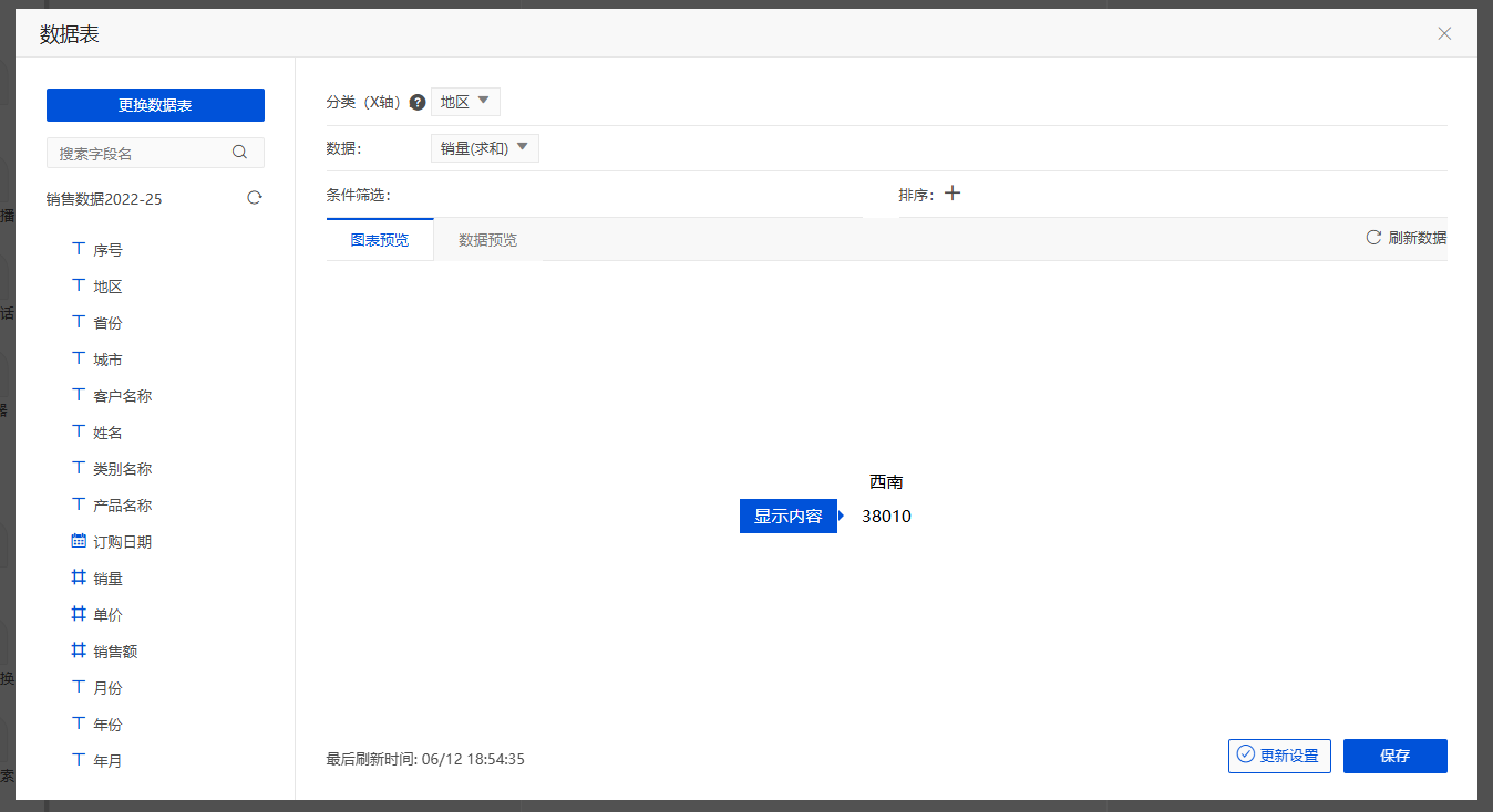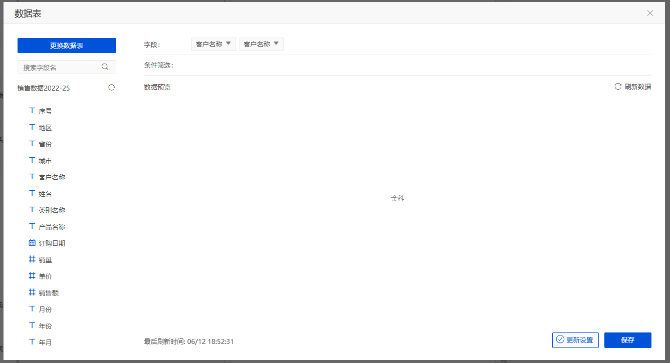 2. 选择数据表,如表数据聚合,根据需求设置条件筛选,完成后单击保存。