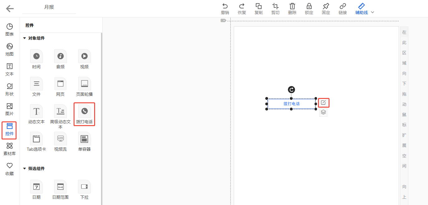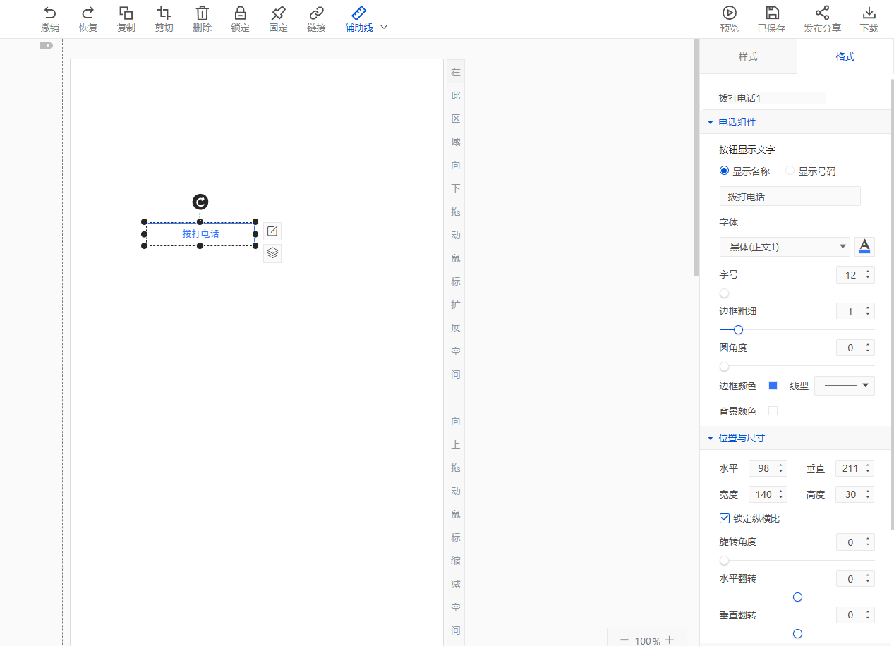 插入拨打电话组件后,可以进行电话组件的格式设置。