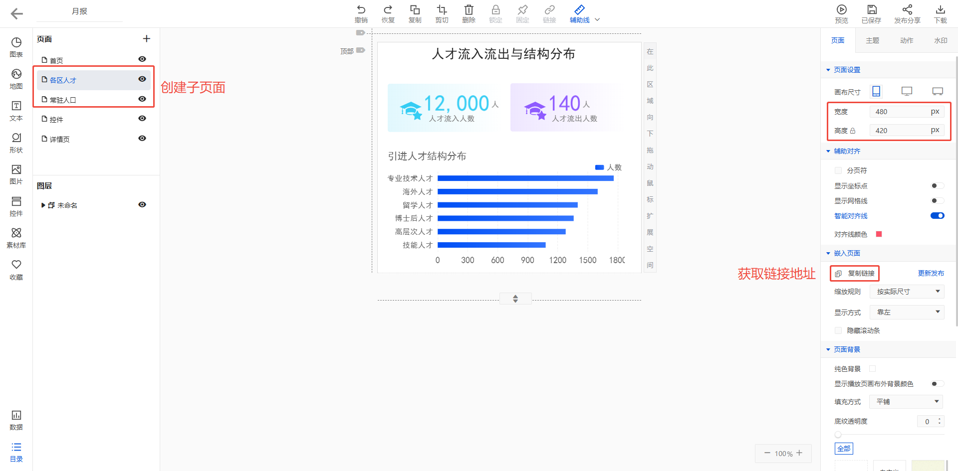 制作页面时需要嵌入其他页面或其他外部网页时,可以使用网页组件实现网页嵌入的功能。