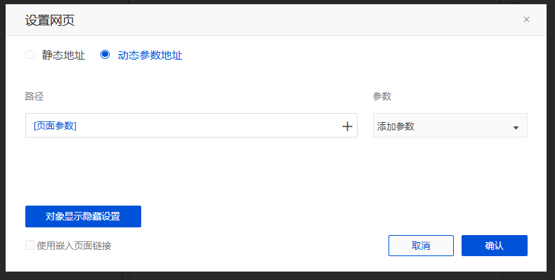 5. 进入网页组件设置页 > 选择动态参数地址 > 路径选择对应的参数名 > 单击确认。