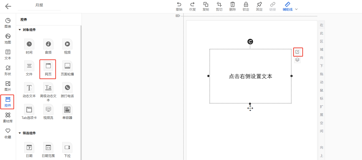 控件 > 时间,选中时间组件,可以在右侧格式属性面板进行格式美化。