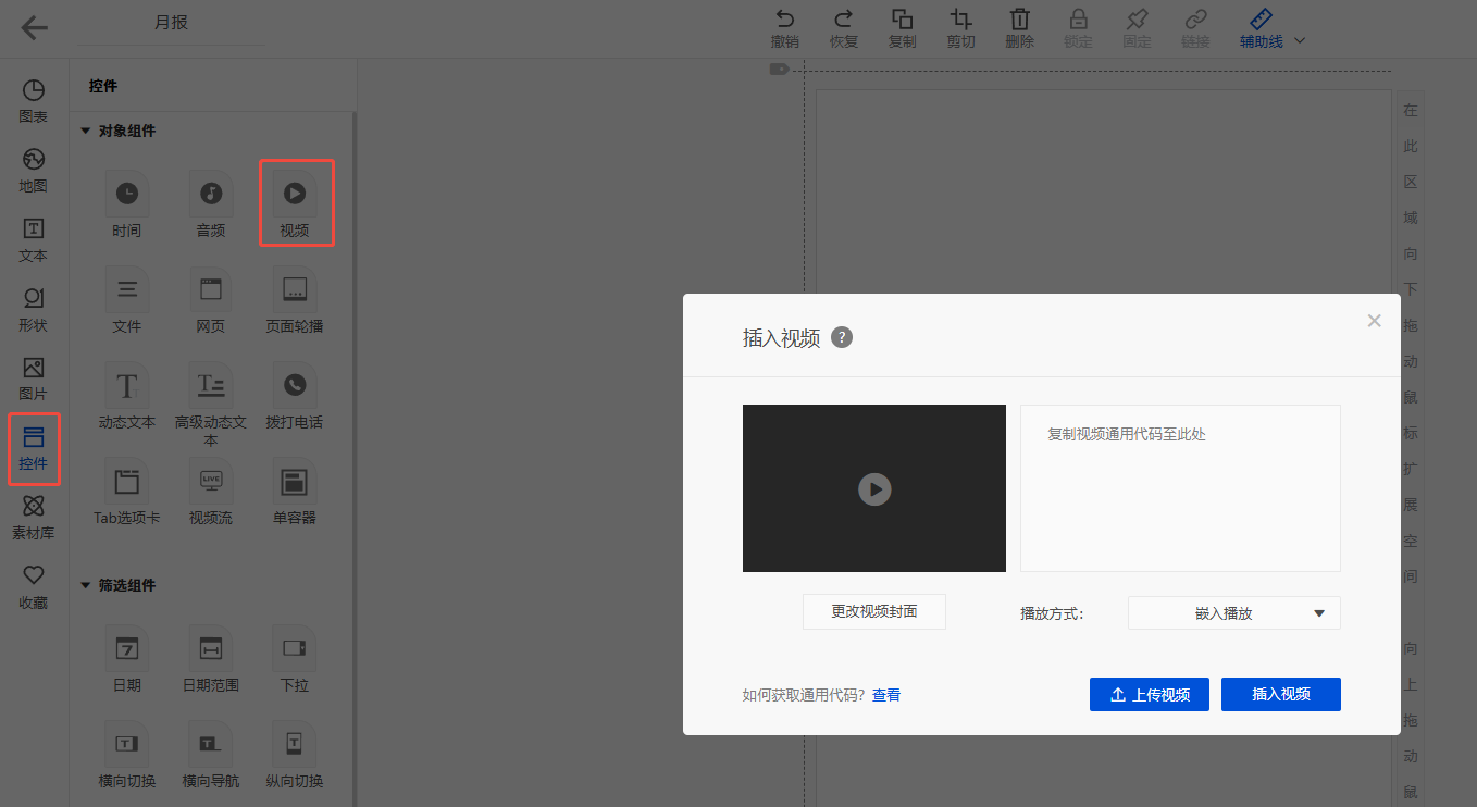 根据业务场景可以在简报或大屏中插入一些视频,使得整个版面内容更加丰富,表达更加全面。