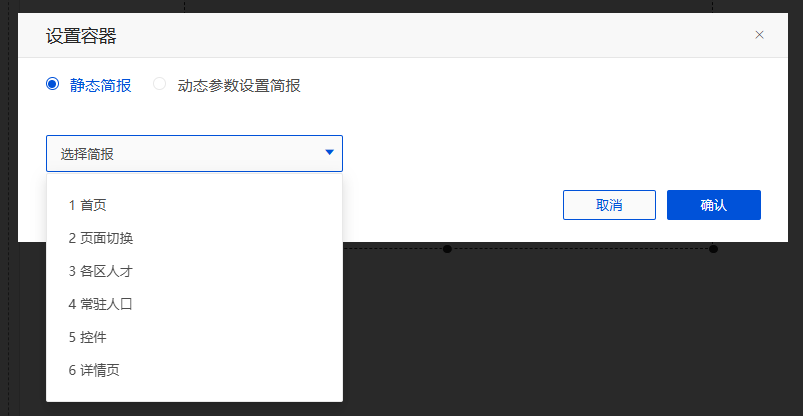 1. 选择动态参数设置简报,绑定单容器的参数。