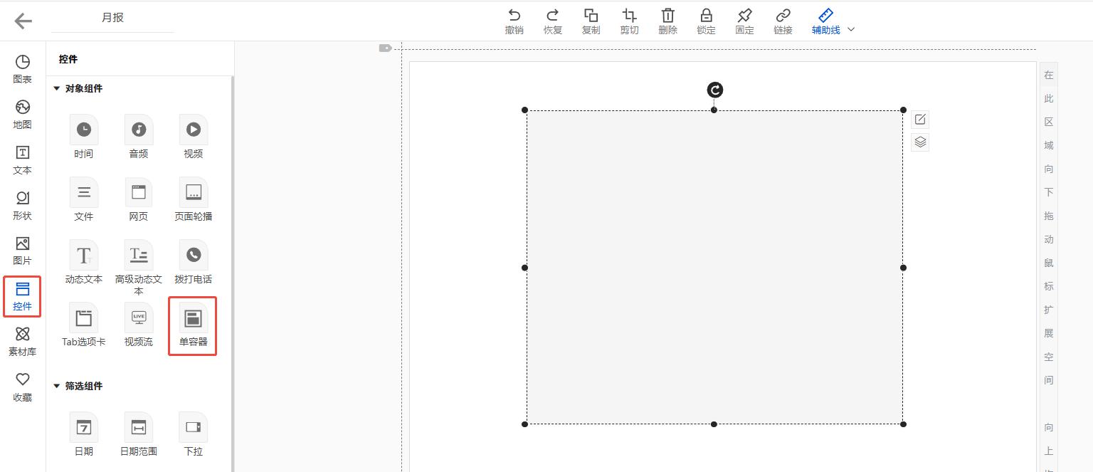 一个页面需要嵌入本简报集里面其他页面图表内容,并通过组件动态呈现,可以使用单容器组件实现,并且页面性能要优于使用网页组件。