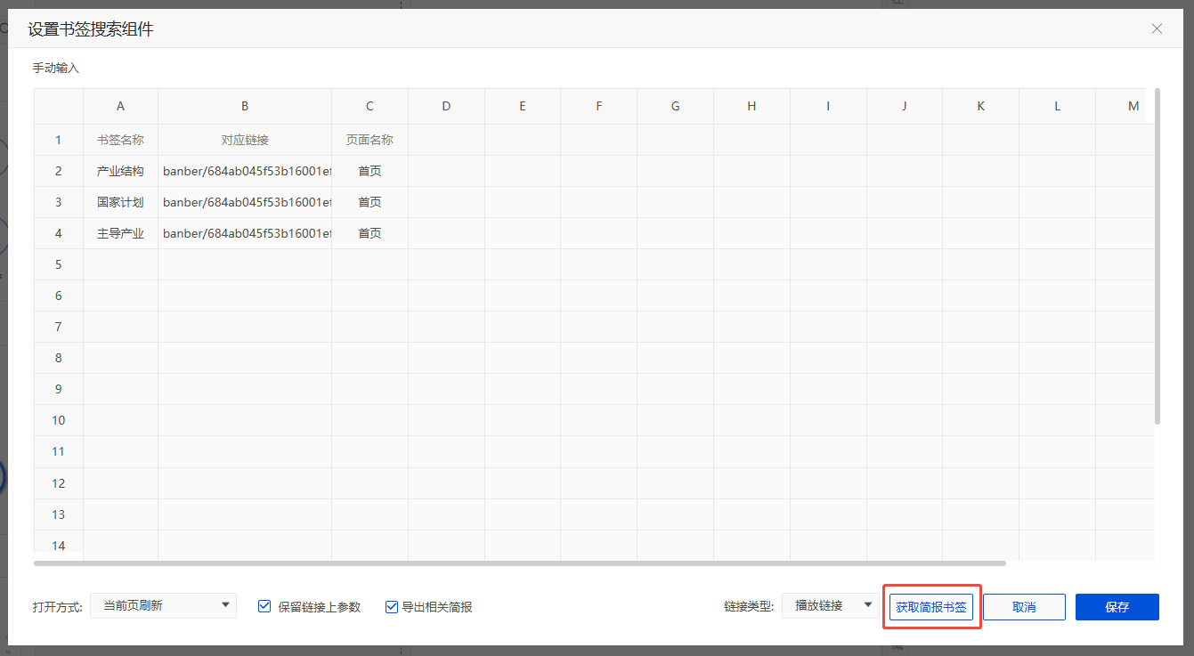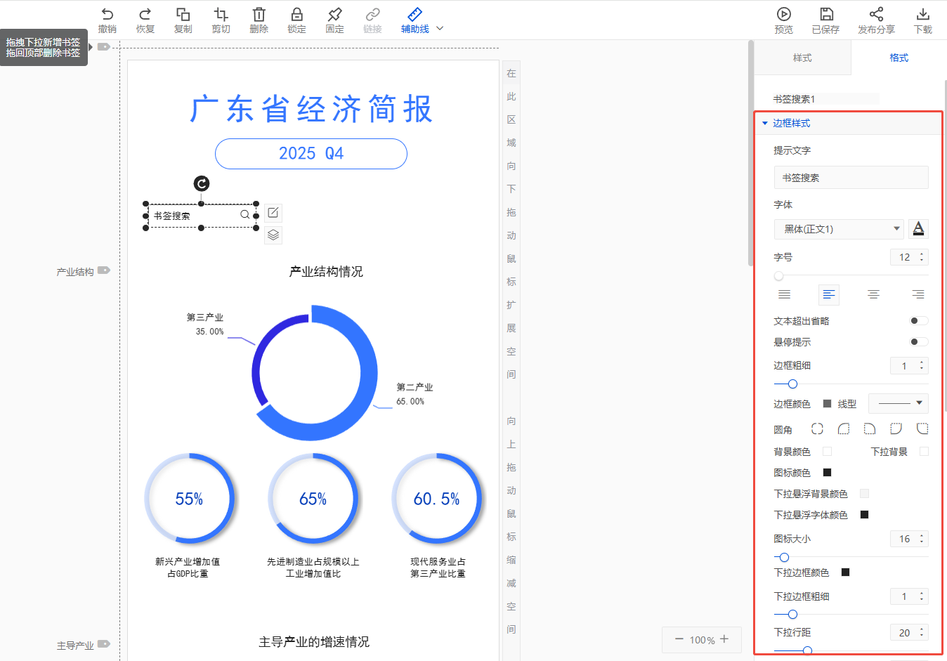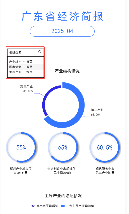 设置页面书签,通过书签搜索组件,快速定位到页面书签位置,便于用查看阅读简报。