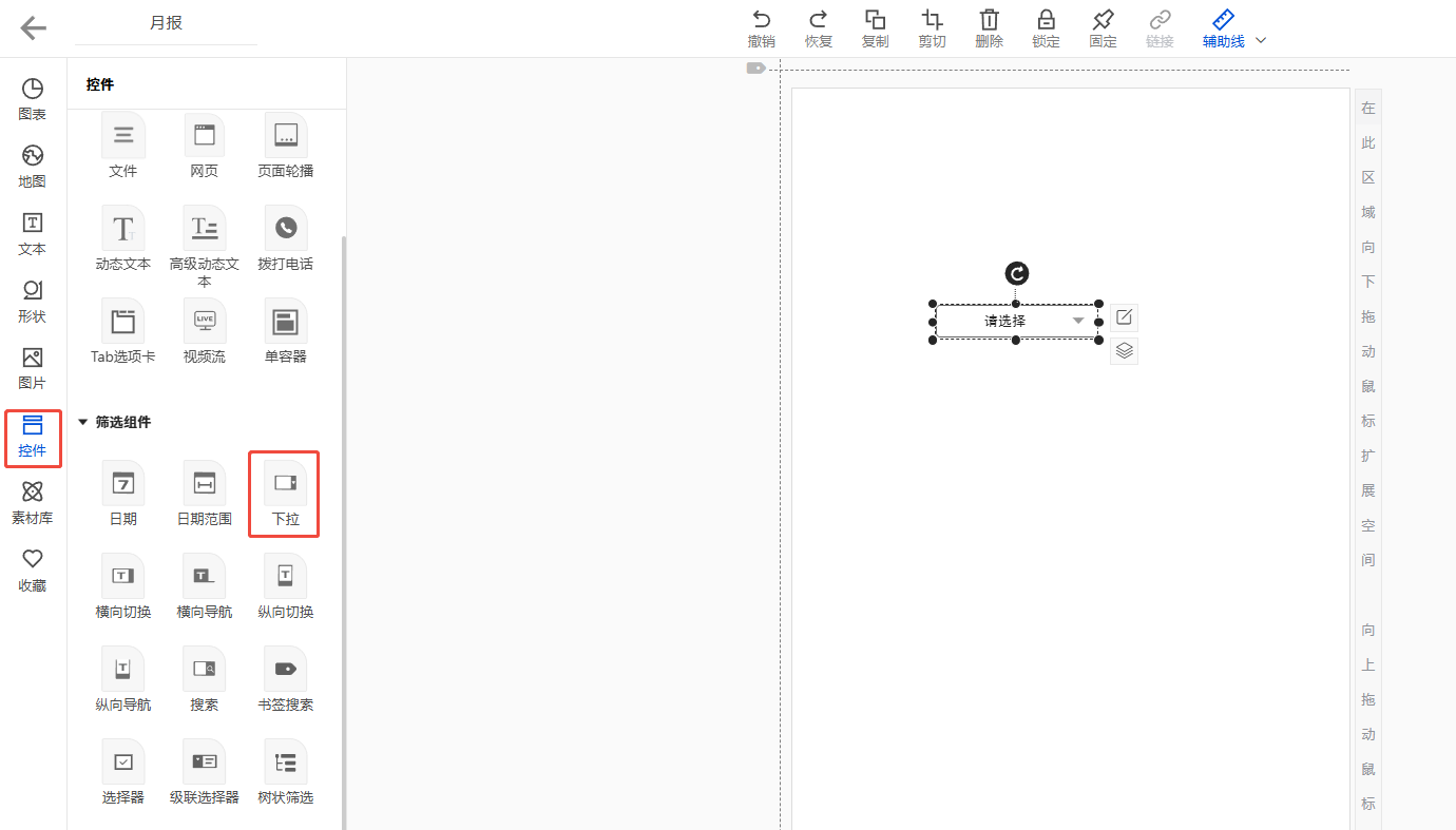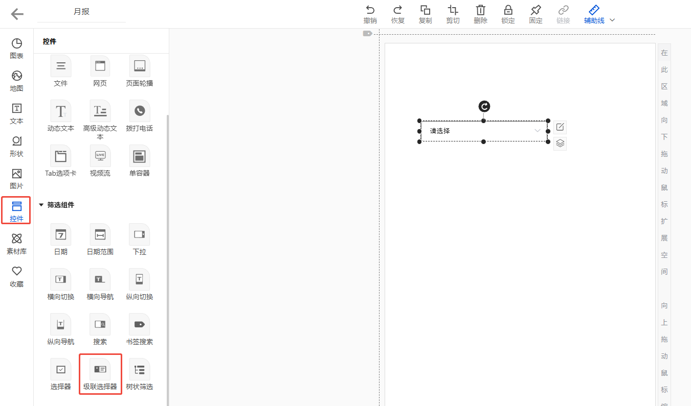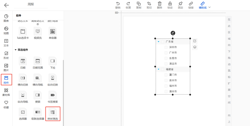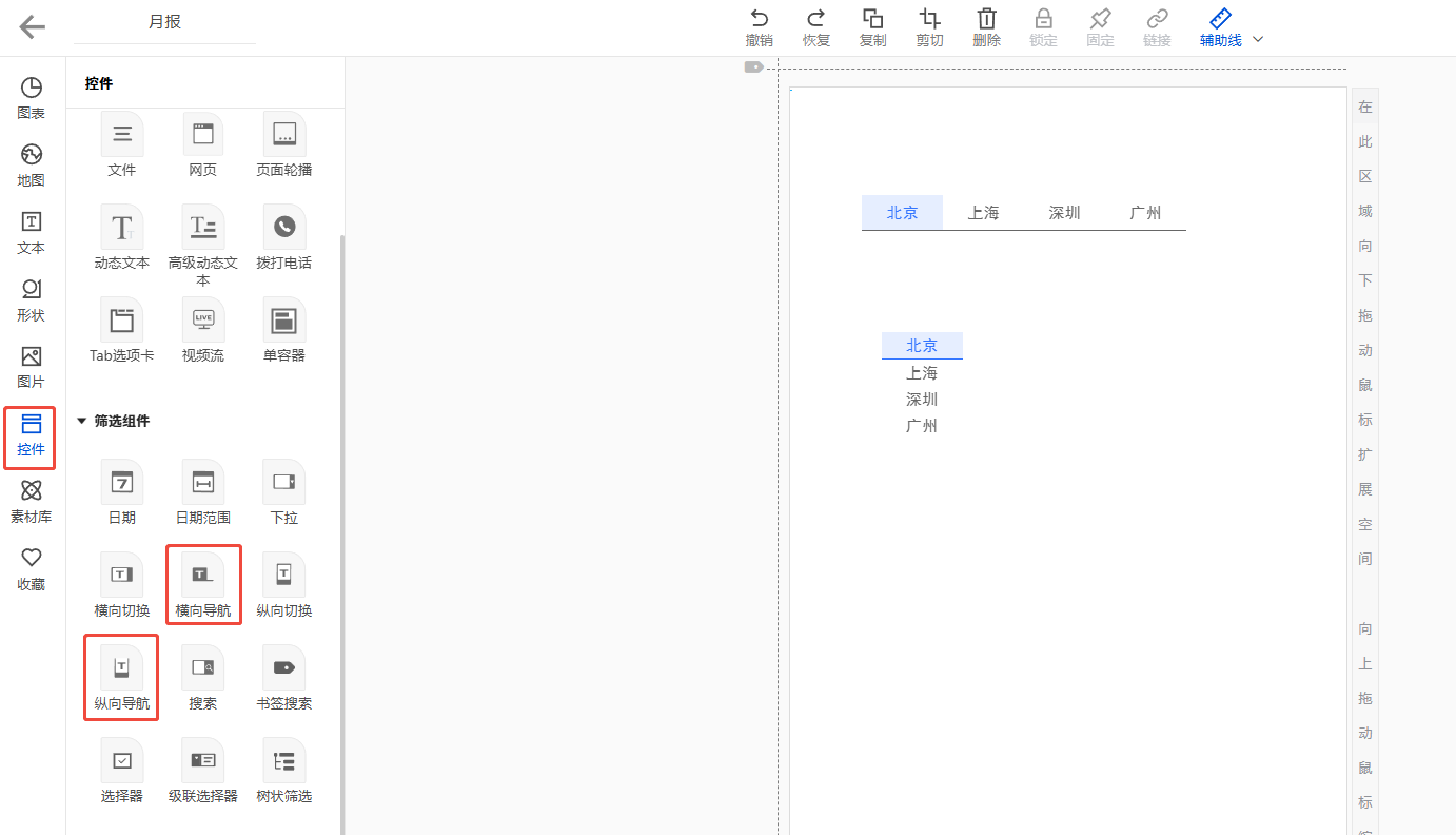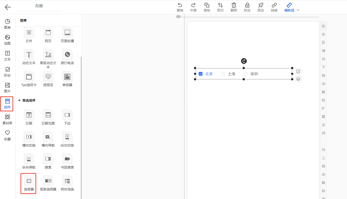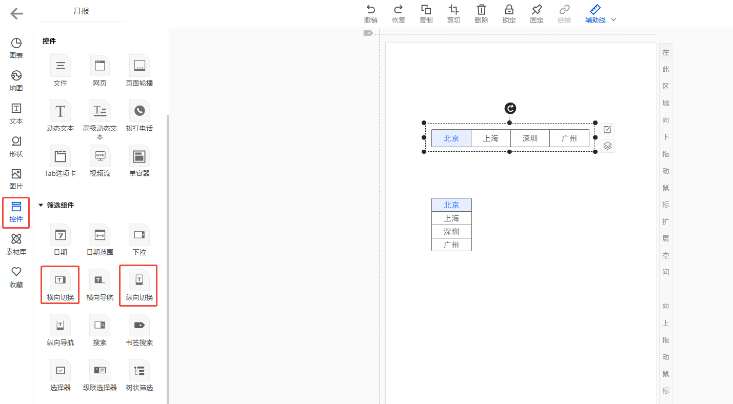 通过组件进行数据筛选,通过组件绑定参数,实现同一分析报告通过不同的参数控制显示对应相关的数据。