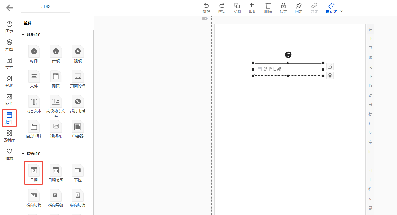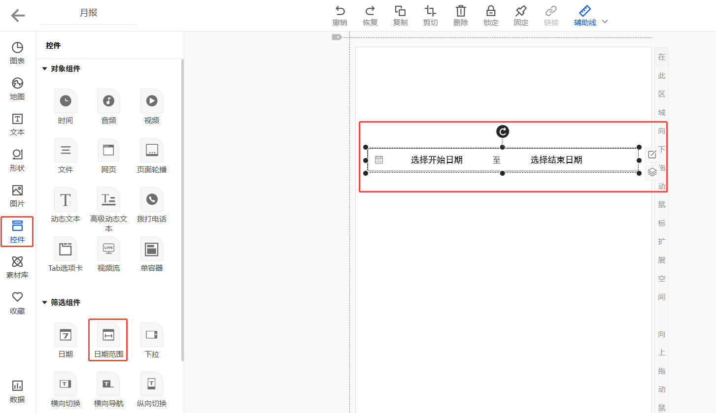 为实现通过日期控制简报中数据的展现,比如筛选2021-09-09的数据,需要使用日期组件。