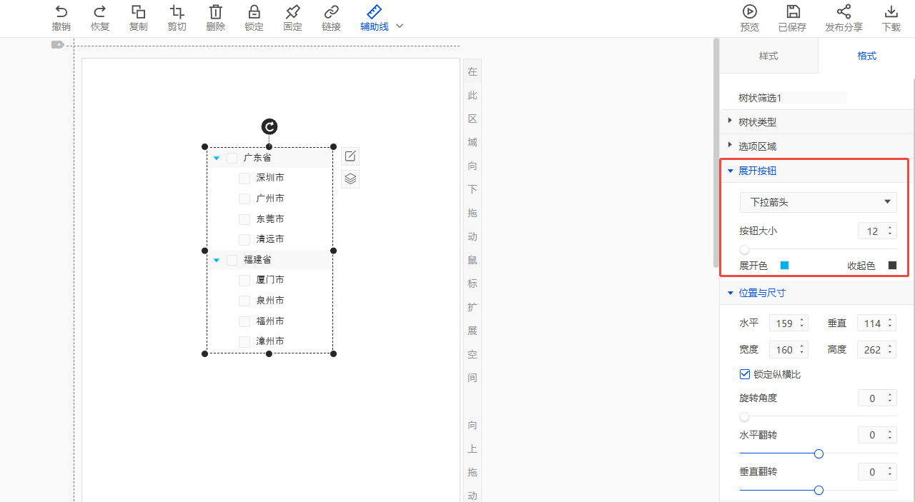 下拉样式:下拉箭头/下拉三角,按钮大小,展开色,收起色。
