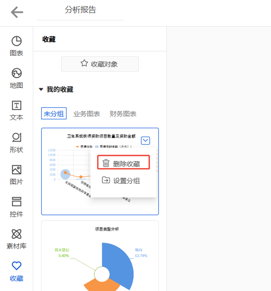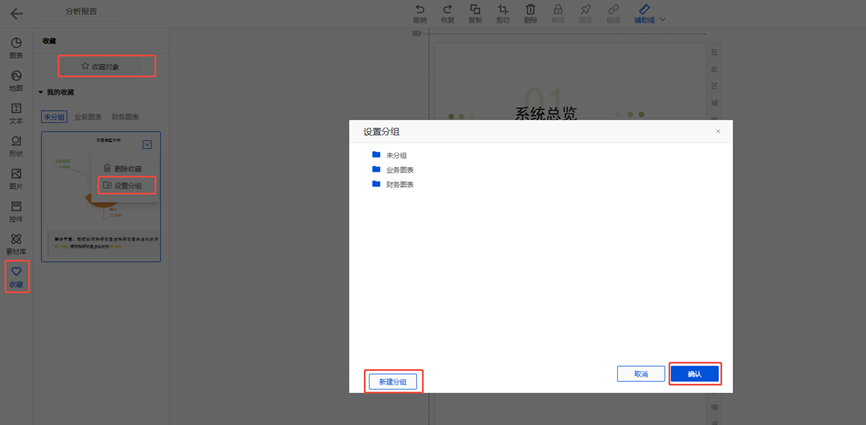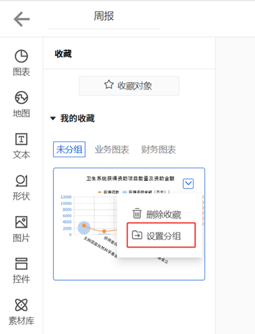 用户可以将一些常用的样式或者设置好格式的对象收藏,方便重复使用,设置收藏分类是为了方便用户管理自己收藏的对象。以下操作请在简报编辑页面中进行。