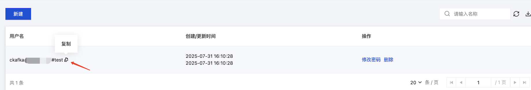 4. 单击提交,完成创建,在用户管理列表页面,可以复制用户名。