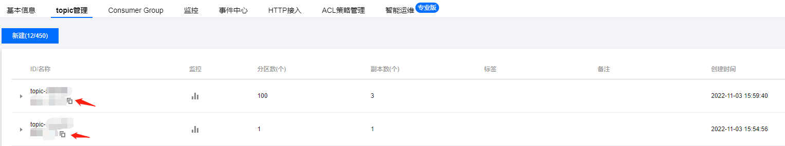 topic | Topic 名称,您可以在控制台上 topic 管理页面复制。 ![]() |