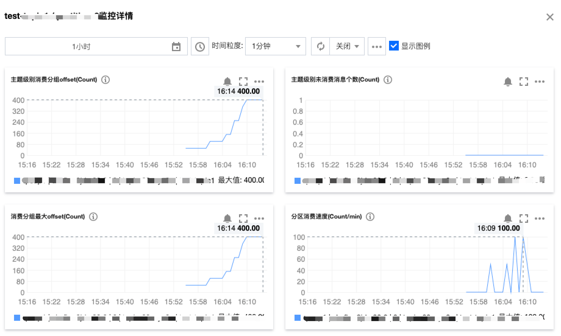 4. 在 CKafka 控制台 的 Consumer Group 页面,选择对应的消费组名称,在主题名称输入 Topic 名称,单击查看详情,查看消费详情。