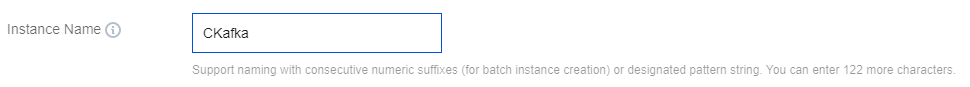 Automatically incrementing suffixed numbers: If you purchase multiple CKafka instances, numbers will be suffixed to their names by default, such as ckafka1, ckafka2, ckafka3... For more information, see Automatically incrementing suffixed numbers.