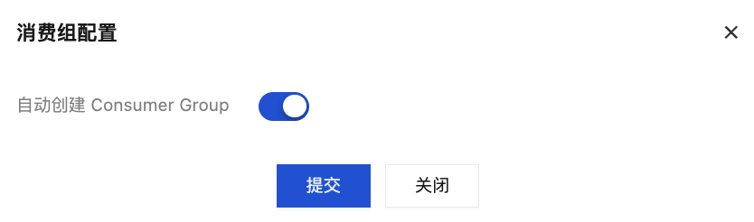 ,必须以字母开头),系统会自动创建此消费组。CKafka 默认为您开启了自动创建 Consumer Group 的开关,您可以在 CKafka 控制台手动开启或者关闭,关闭后只能使用在控制台上已有的消费组,无法自动新建消费组。