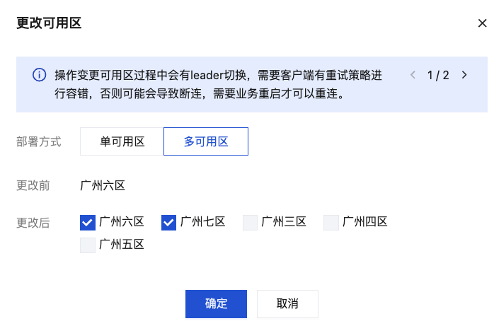 当原实例是多可用区部署时,支持切换可用区,不支持切换回单可用区部署。