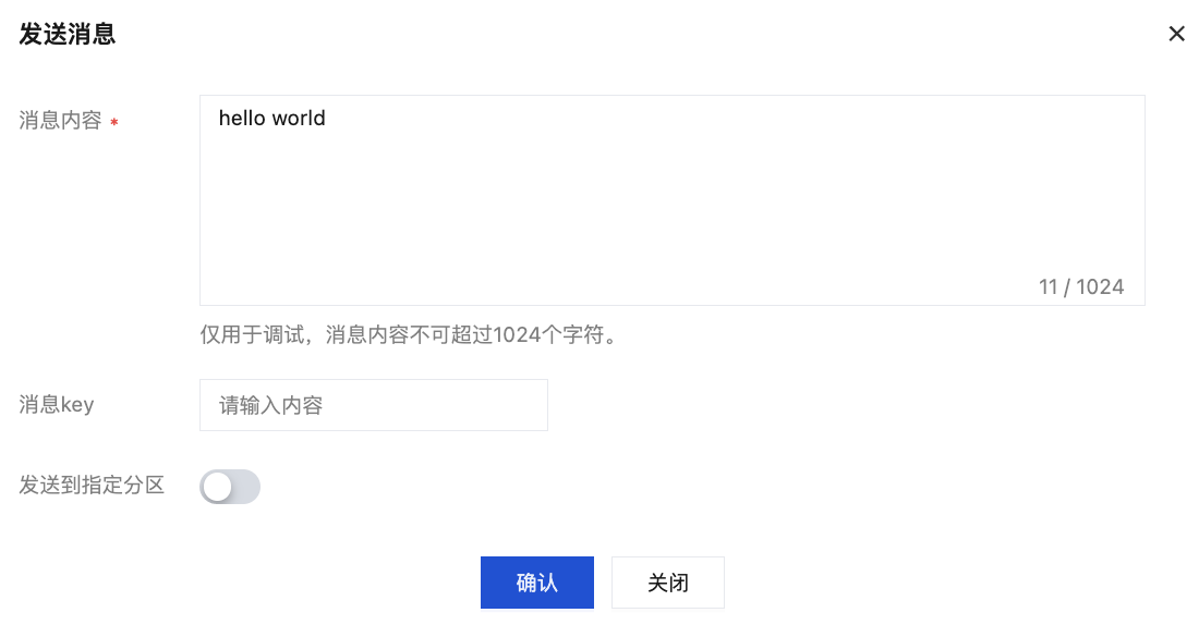 发送到指定分区:支持将消息发送到指定分区,默认关闭。