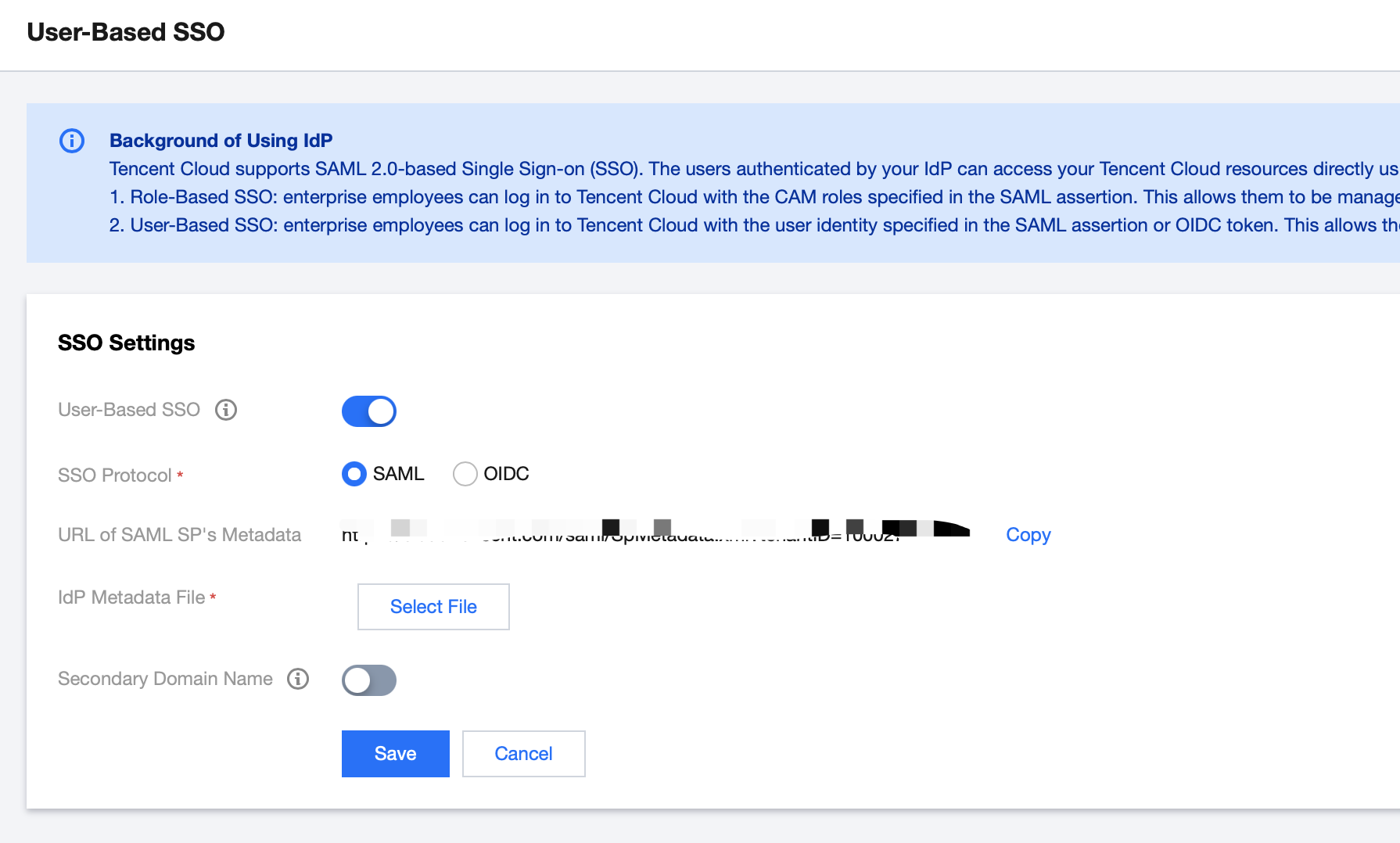1. Obtain the URL of SAML SP's metadata from Tencent Cloud.