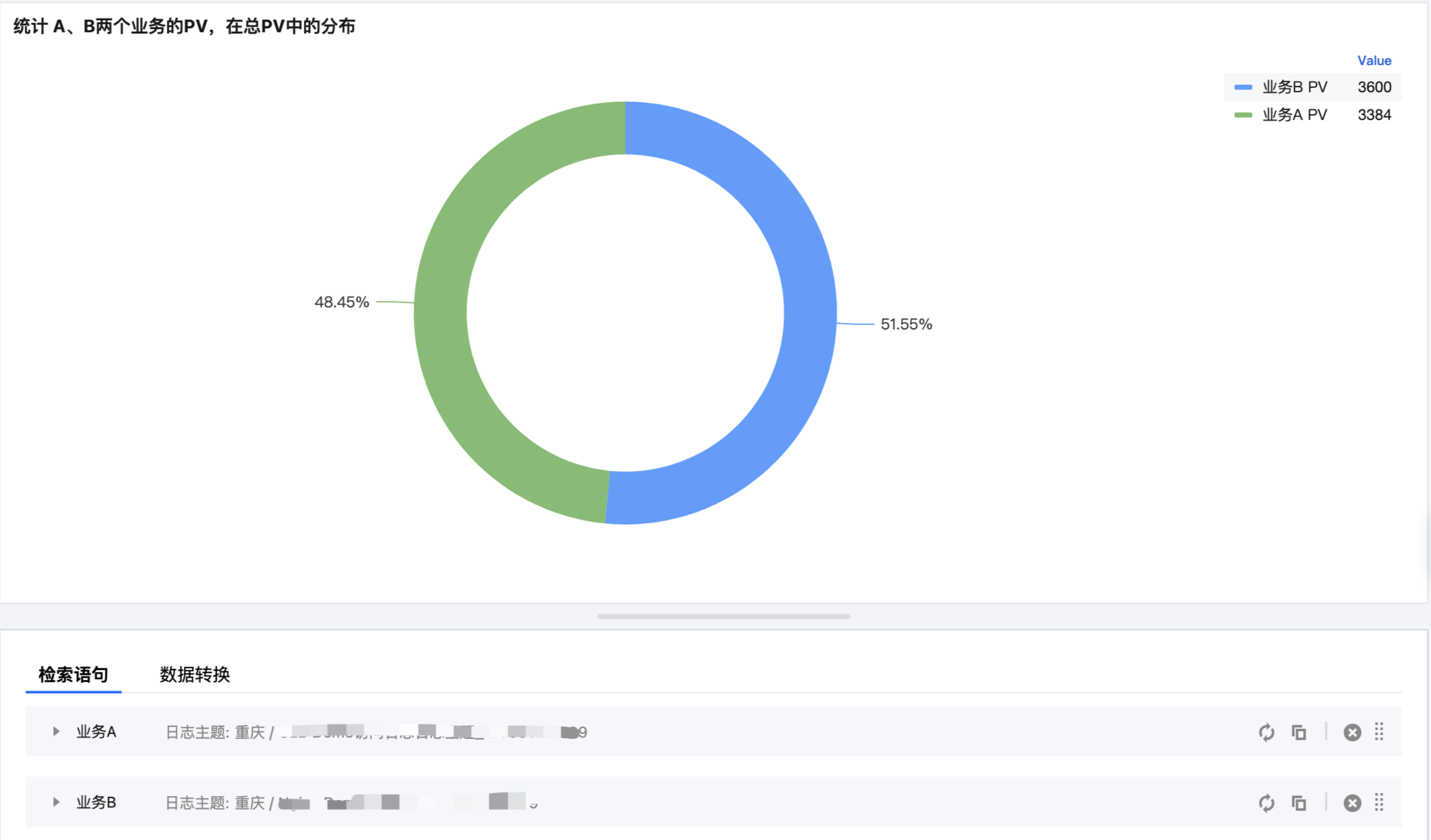 统计 A、B 两个业务的 PV,在总 PV 中的分布