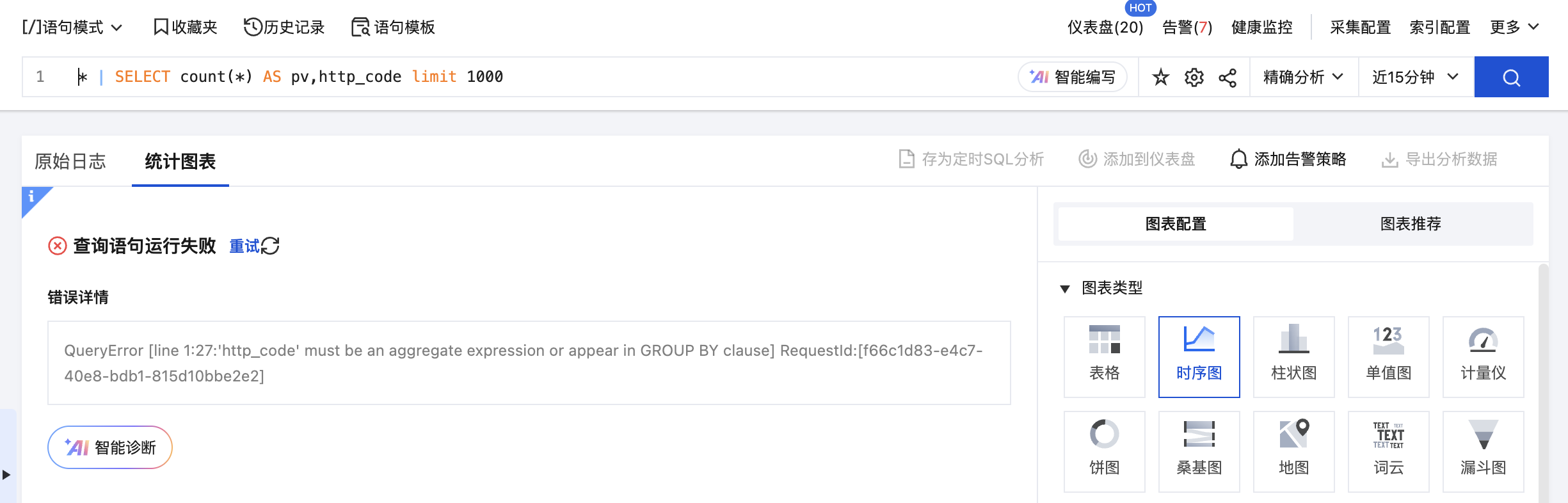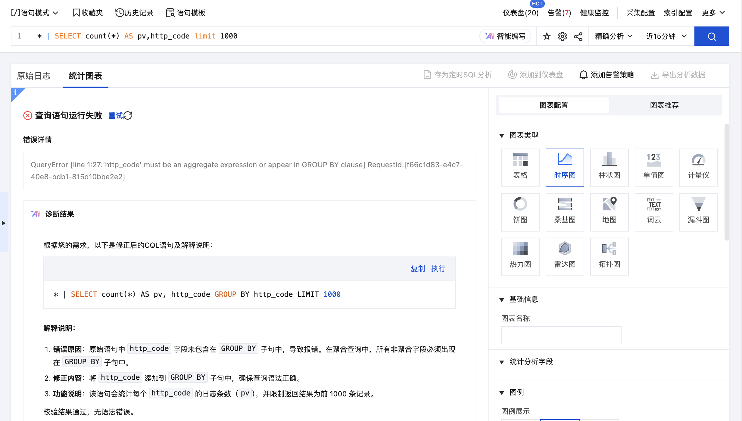 1. 在检索分析页面出现查询语句报错时,单击智能诊断。